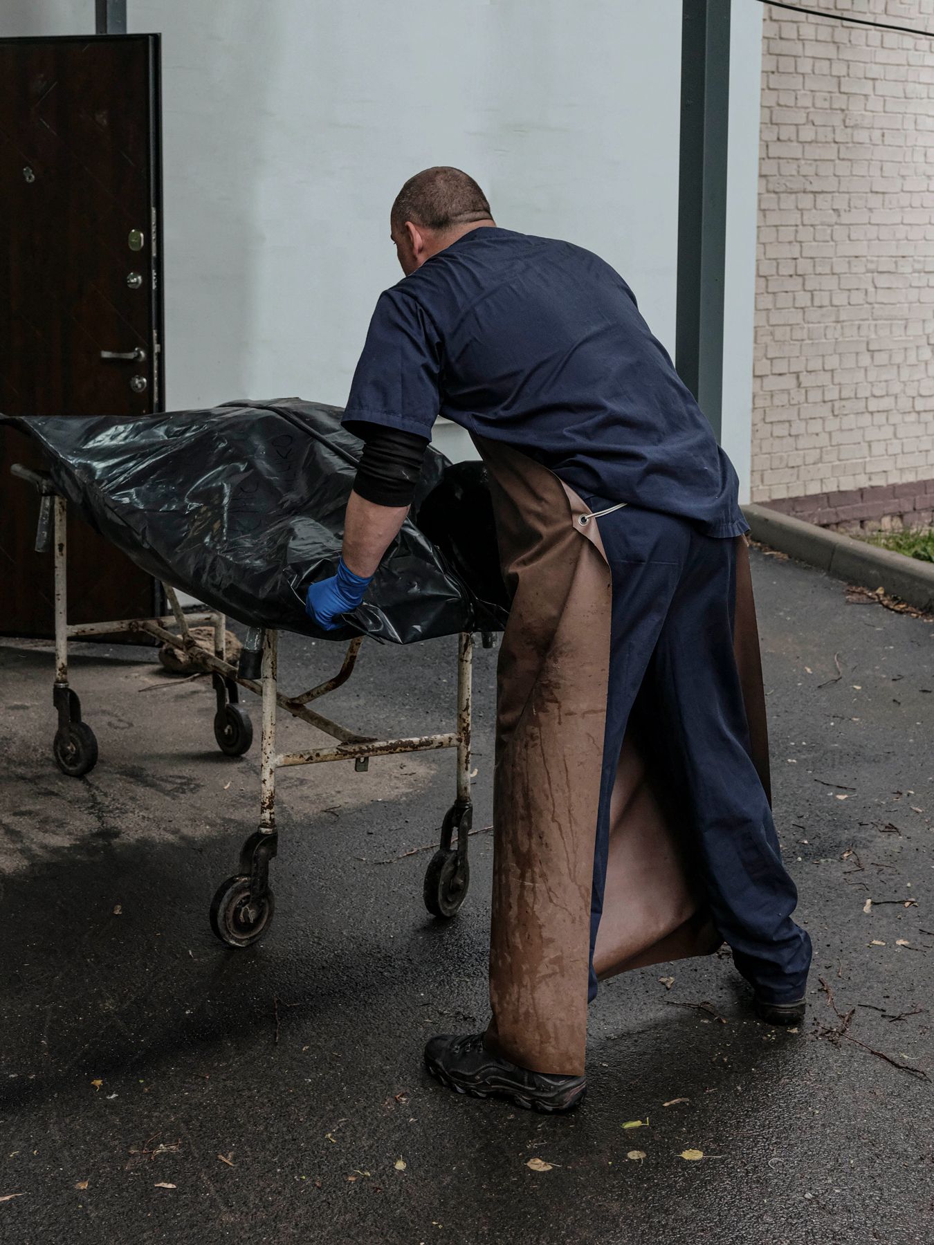 Когда в конце марта российские силы отступили из Киевской области, они, подобно отливу, который обнажает на дне раков и моллюсков, оставили за собой трупы, рассеянные почти повсюду: на улицах, на дорогах, во дворах, в садах и на пустырях. Они были сфотографированы журналистами, зарегистрированы полицией, а затем развезены по местным моргам для судебно-медицинской экспертизы.