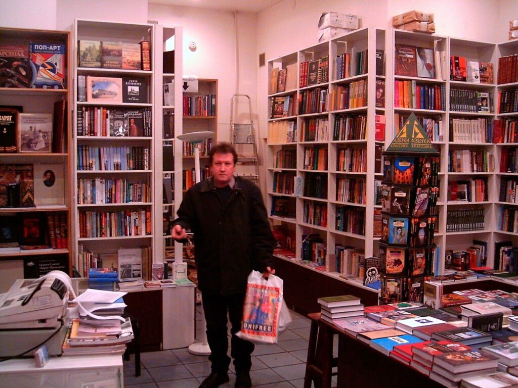 — Я всегда любил розницу. Когда работал в киоске, знал на память цены на все книги. Я и сейчас их знаю практически все. Я розницу обожаю, обожаю общаться с людьми, которые приходят. После того как «Летний сад» для меня кончился, я на очень тяжелых условиях открыл еще два магазина: «Гуманитарную книгу» на 1-й линии Васильевского острова и магазин на Рубинштейна под вывеской «Академического проекта» — он был покруче, поскольку помещение было достаточно большое. Но поскольку и там, и там были проблемы с арендой, то в конце концов и они закрылись. И в один прекрасный момент один человек с исторического факультета, которому я когда-то помогал, когда он сидел в тюрьме, сказал мне: «Слушайте, у моего знакомого есть помещение в Тучковом переулке, может, вам интересно сделать там магазин?». И я встретился с этим человеком, который не имеет никакого отношения к книгам, — он археолог, но при этом еще бизнесмен, извлекающий деньги из каких-то археологических изысканий. Мы договорились с ним по арендной плате и открыли там магазин. Название было «Книжный окоп». Почему? Потому что напротив, там такая арка, было кафе под названием «Окоп». Студенты постоянно ходили пиво пить в этот «Окоп», так как это было недорогое заведение. И мы решили, почему не назваться «Книжный окоп», для привлечения внимания.