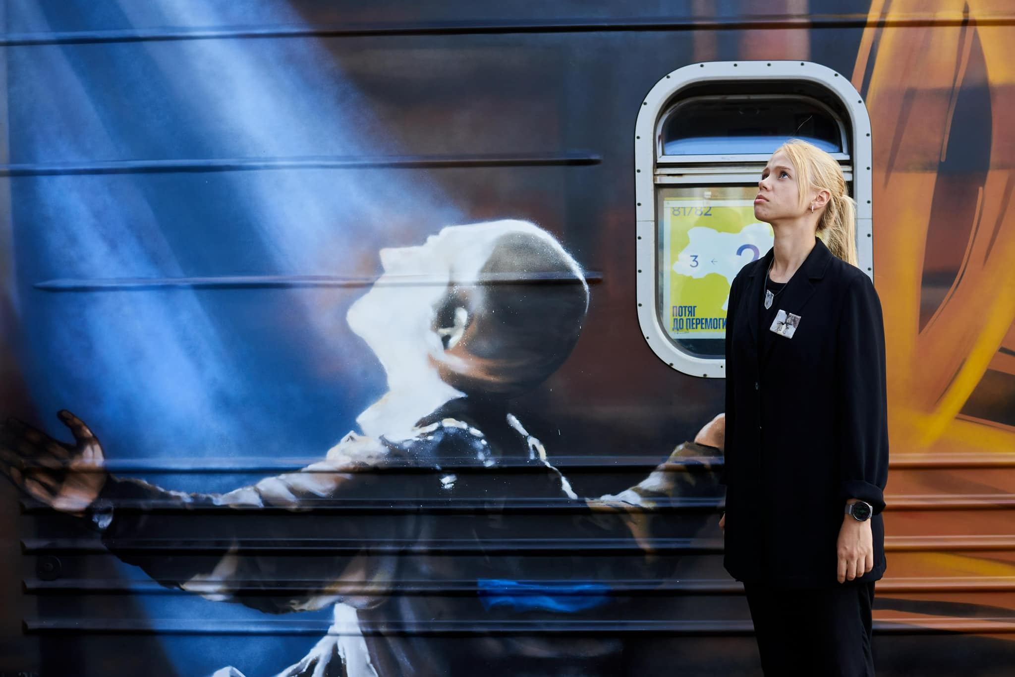 Среди примеров сопротивления российской агрессии на одном из вагонов представлена история Богдана Зизы – евпаторийца, который четвертый месяц находится в СИЗО Симферополя за то, что облил сине-желтой краской фасад здания российской администрации Евпатории и якобы пытался поджечь его, протестуя против полномасштабного вторжения России в Украину.