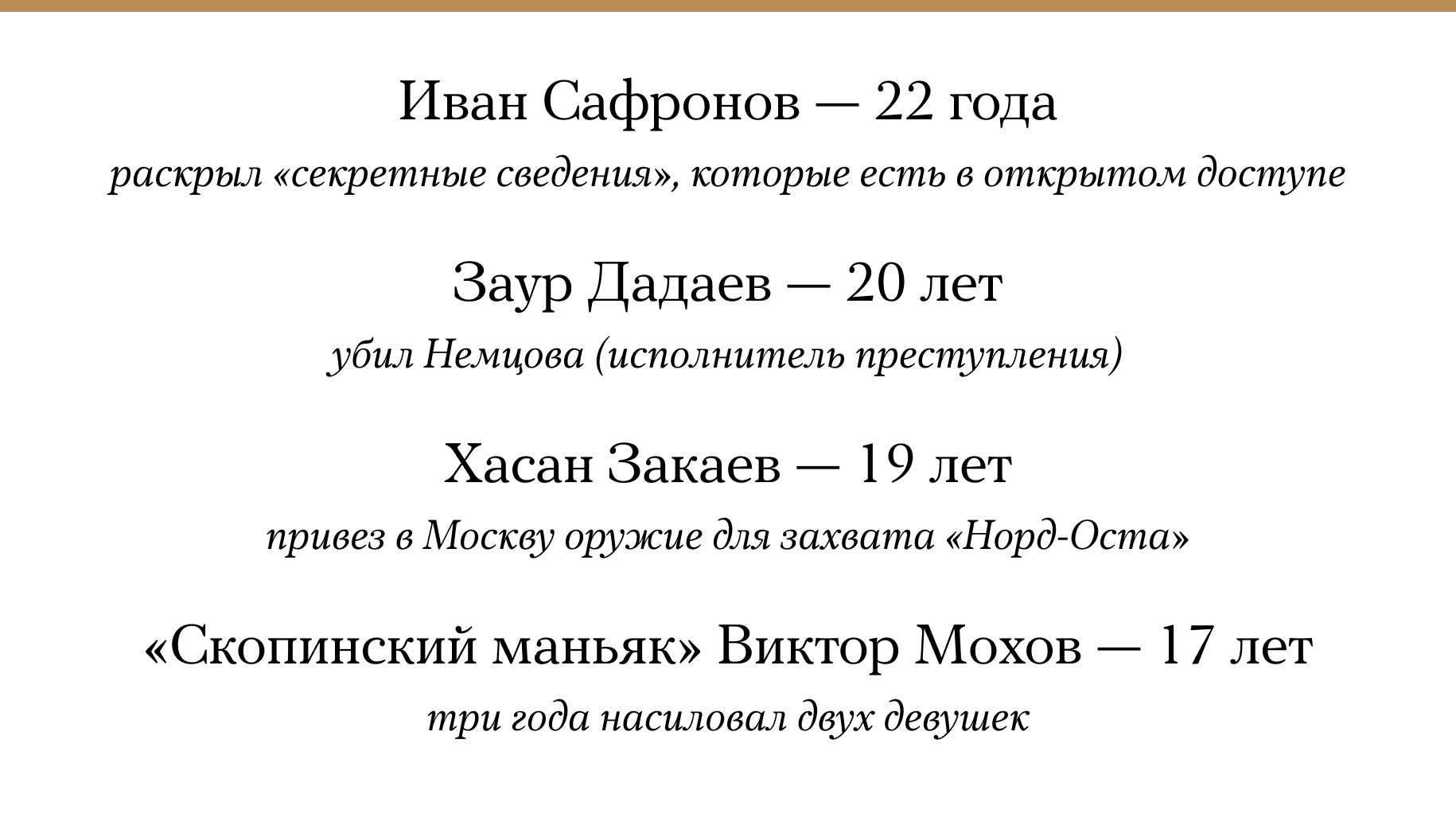Ивана Сафронова посадили на 22 года — за то, что он «разглашал» информацию, которую можно найти в интернете. Кому и за что в России обычно дают такие сроки?