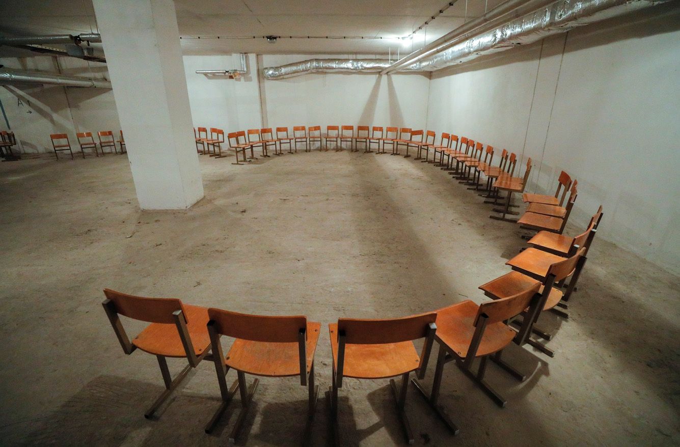 Sergey Dolzhenko / EPA / Scanpix / LETA Школьный класс в бомбоубежище, подготовленный для учеников одной из школ Киева к новому учебному году. Занятия начнутся 1 сентября во всех школах Украины, но очно — только в тех, где оборудовано собственное бомбоубежище или же оно есть рядом