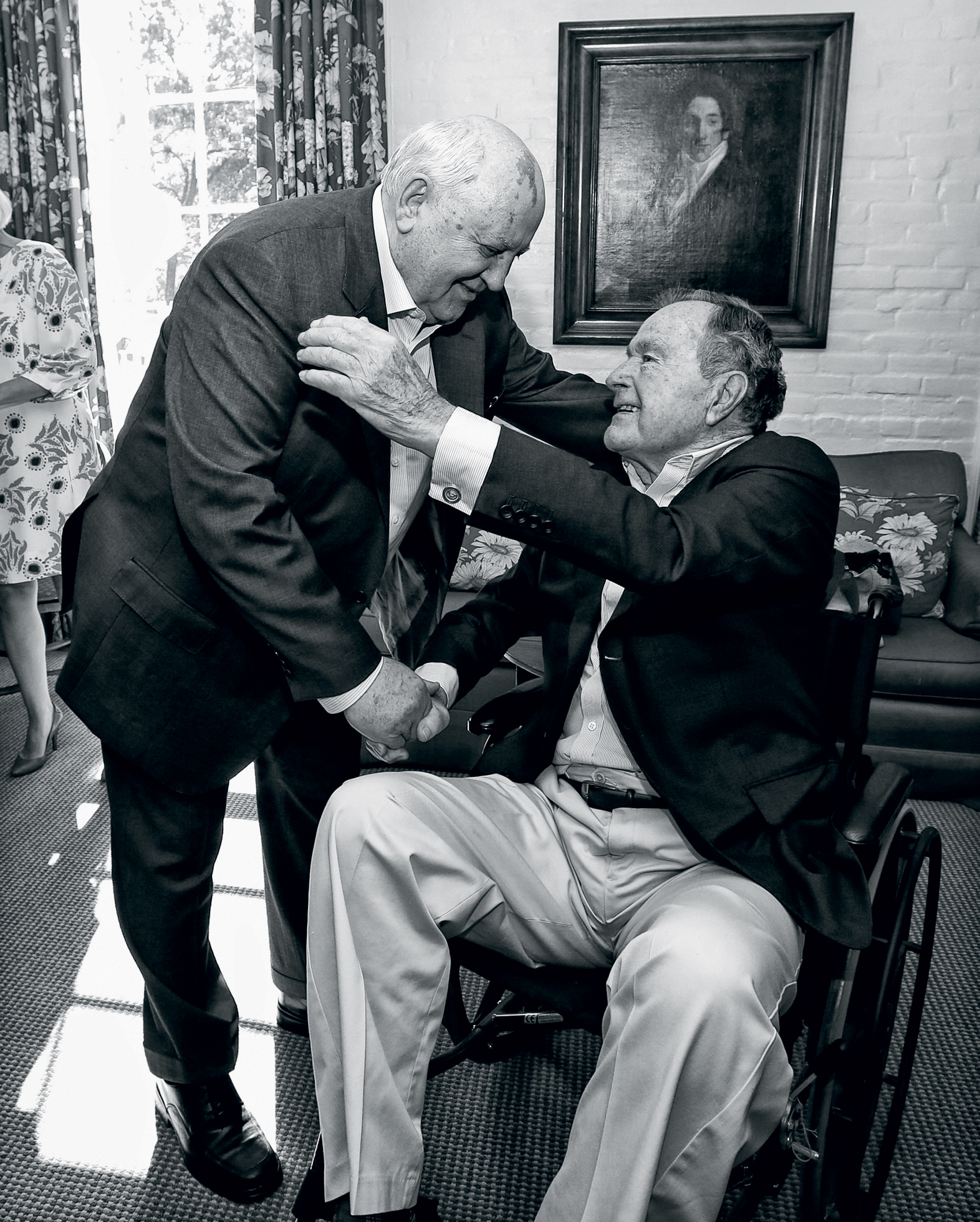NT: *Недавно в интернете я увидела фотографию — вы с Джорджем Бушем-старшим (см. стр. 36). Он в инвалидной коляске. Вы летали к нему в Хьюстон?*