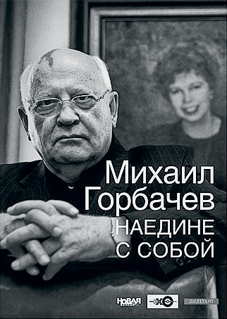 Абсолютно. Я не освободился. И ей эта книга посвящена. (Горбачев закрывает книгу, на обложке которой его портрет на фоне живописного портрета Раисы Горбачевой, и кладет на нее руку — тема закрыта).