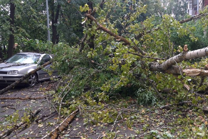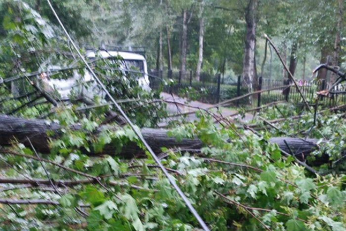 В Петербурге ночью был ливень и сильный ветер с порывами до 18 м/с. Показываем последствия непогоды