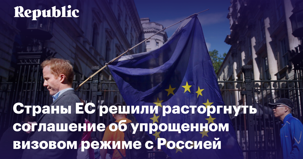 Европейский союз приостановит действие соглашения с Россией по упрощенной выдаче виз, но не будет вводить полный запрет, поскольку ЕС не удалось достичь по этому вопросу единогласия. Об этом сообщил в Facebook* министр иностранных дел Венгрии Петер Сийярто.