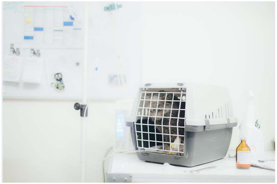 В калужском приюте «Территория кошек» свободная от выгула животных комната служит офисом, кухней, складом и процедурной. Пока Алена и Ольга рассказывают о приютских буднях, в углу комнаты в переноске сидит на капельнице серая взъерошенная кошка Этоша.