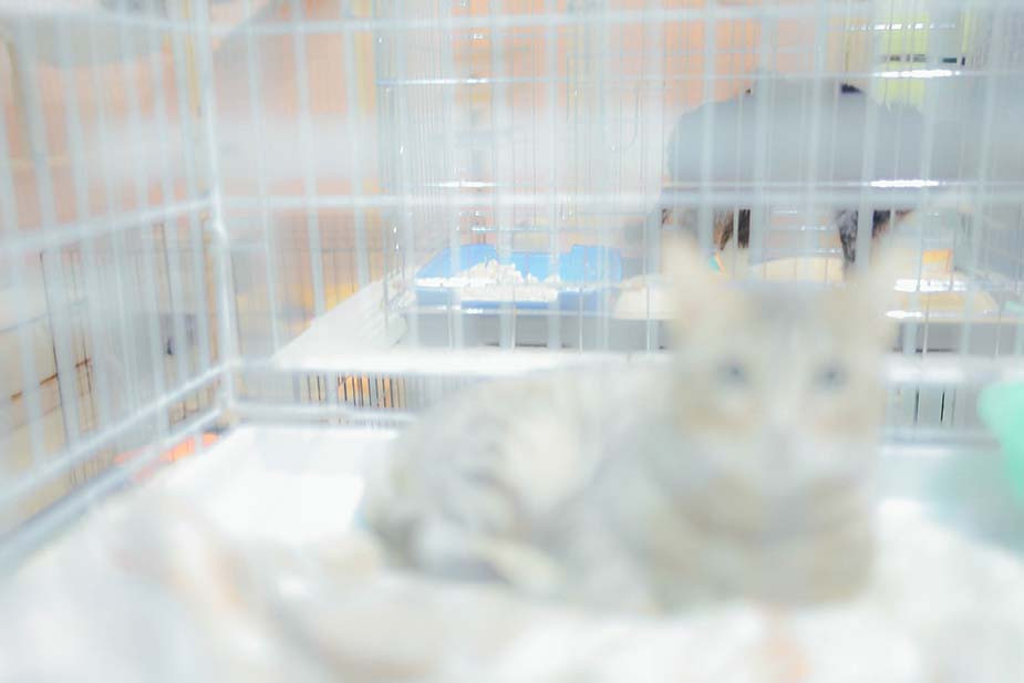 Помещение большого карантина в приюте заставлено клетками. Туда отсаживают заболевших животных, чтобы обследовать, лечить и наблюдать за их состоянием. Но сейчас почти половина обитателей карантина — это здоровые кошки, для которых нет места на выгулах.