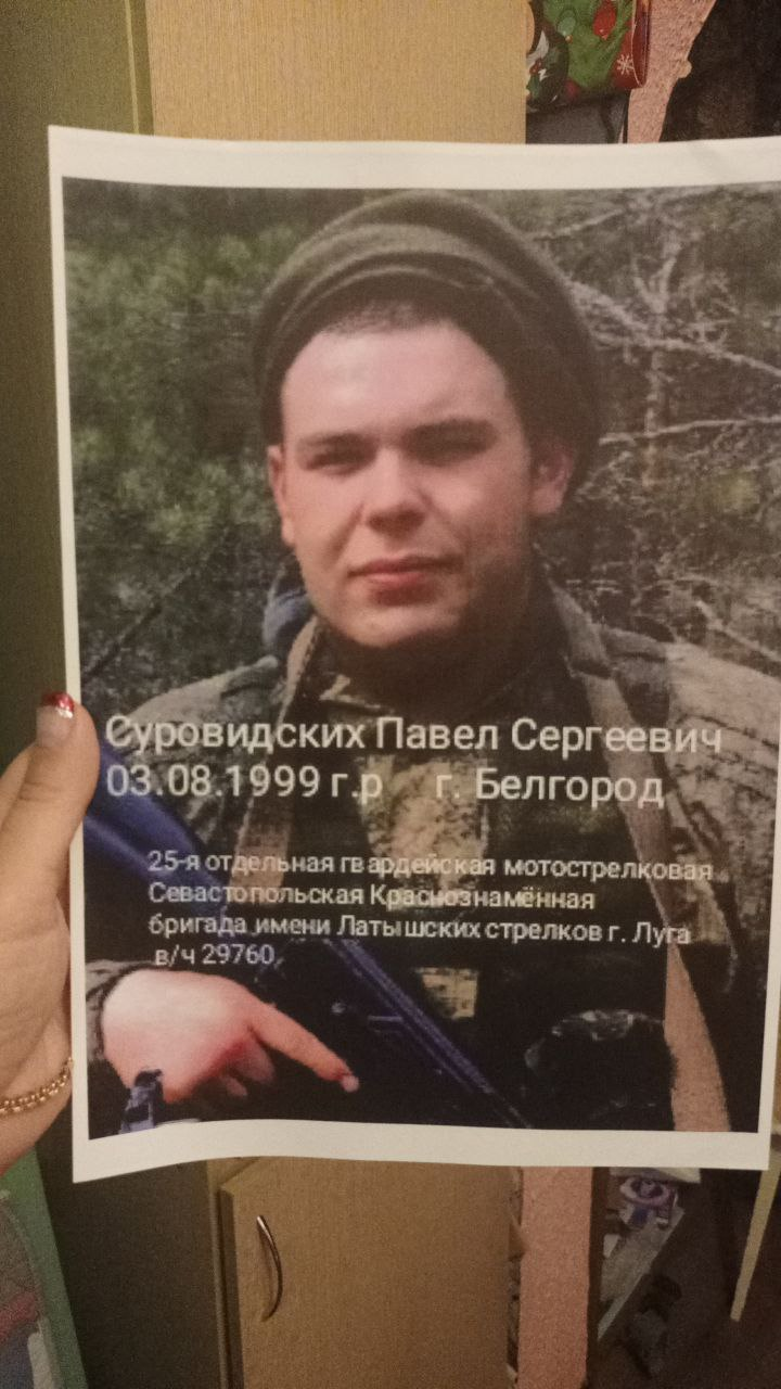 Тела не совсем испорчены. По фотографии можно немножко опознать. Там были видны зубы. У моего Кирилла голливудская улыбка. У Паши тоже неплохие зубы. Мой сын не подходил по росту. Там было под вопросом: либо это мой сын, либо это Павел Суровидских. Но со мной не совпал ДНК. Я позвонила родным Паши в Белгородскую область и сказала им срочно ехать в Ростов. Пашу брали в плен и есть видео и его, и Румянцева, и еще одного парня. Он один вышел из плена живой – его обменяли. Игоря Румянцева похоронили 31 июля (Север.Реалии не удалось обнаружить сообщений в СМИ или от официальных лиц о похоронах военнослужащего с именем Игорь Румянцев. – СР). 21 августа, через месяц почти, я опознала Пашу Суровидских. Ни часть, никто не инициировал там поиски (в морге Ростова-на-Дона). Тогда о чем говорить? Как они ищут на Украине, если они здесь не опознают наших ребят? Это все говорит о халатности, попустительстве чиновников всех уровней.