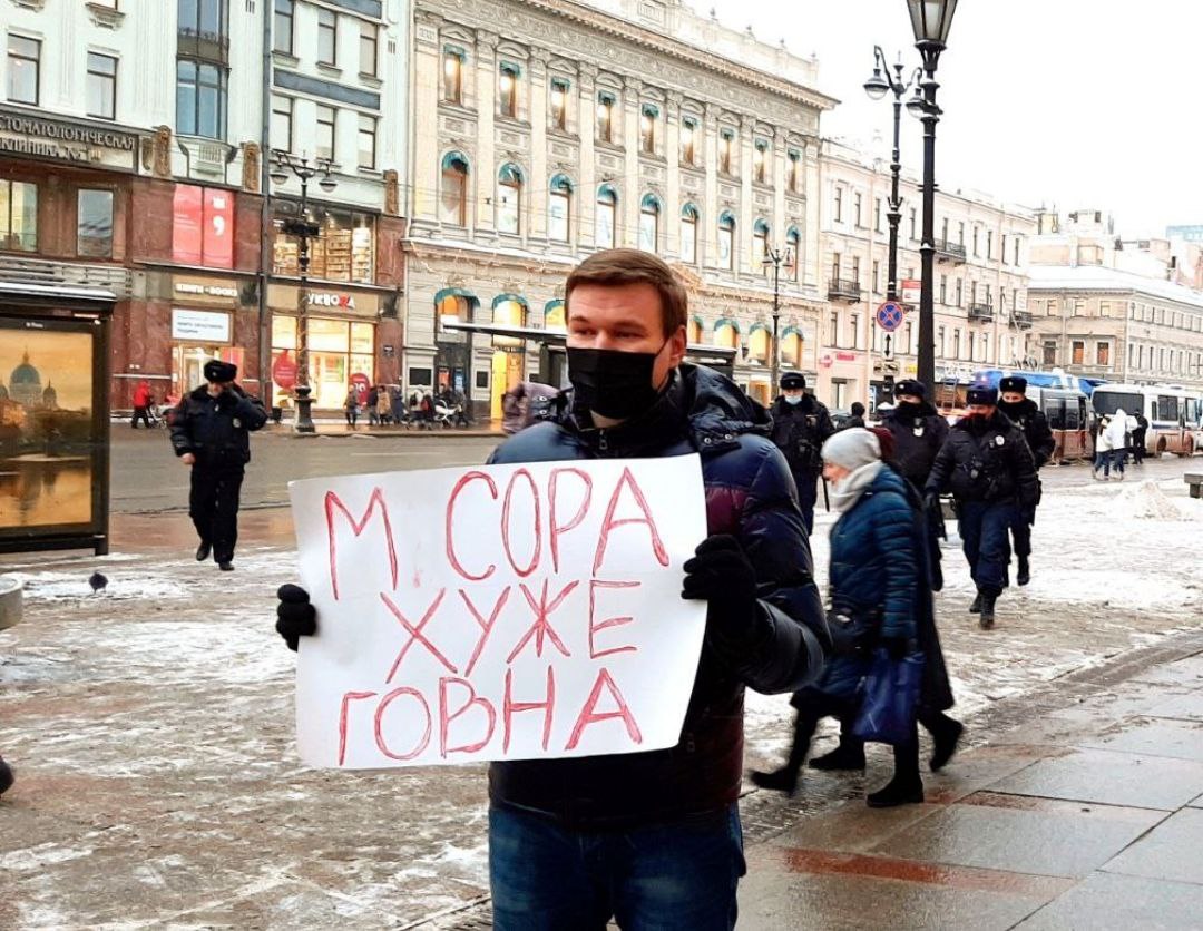 Петербуржца приговорили к шести месяцам исправительных работ условно за плакат «Мусора хуже говна»