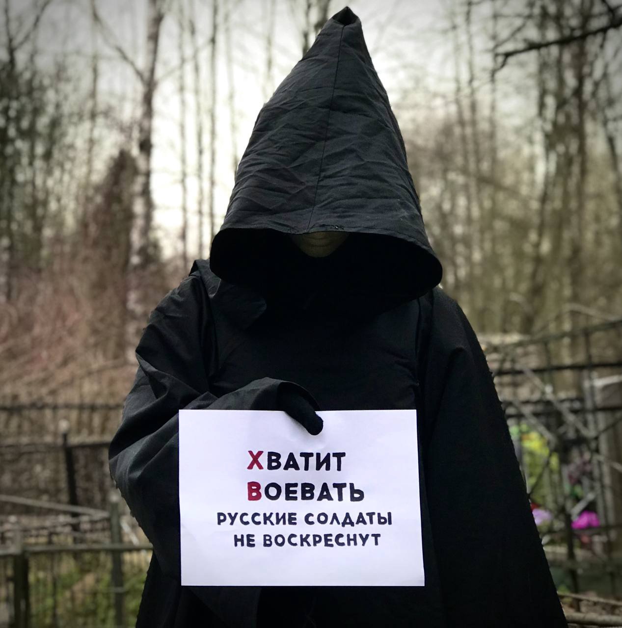 В этот день в группе объединения был опубликован всего один пост — с антивоенной акцией Партии мертвых в честь Пасхи. Анонимный художник в черной накидке с капюшоном сфотографировался на кладбище с плакатами «Россия воскреснет свободной», «Хватит воевать Русские солдаты не воскреснут», «Христос воскрес, а срочник нет», «Хватит воевать Мирные жители не воскреснут».