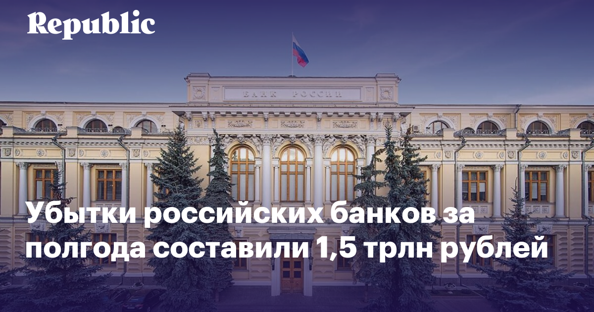 Чистые убытки российских банков за первую половину 2022 года составили 1,5 трлн рублей, тогда как в прошлом году банковский сектор показал прибыль в 2,4 трлн рублей. Об этом говорят данные Центробанка РФ (сводная статистика есть в распоряжении Republic). Это первое раскрытие сведений о последствиях кризиса с начала войны в Украине.