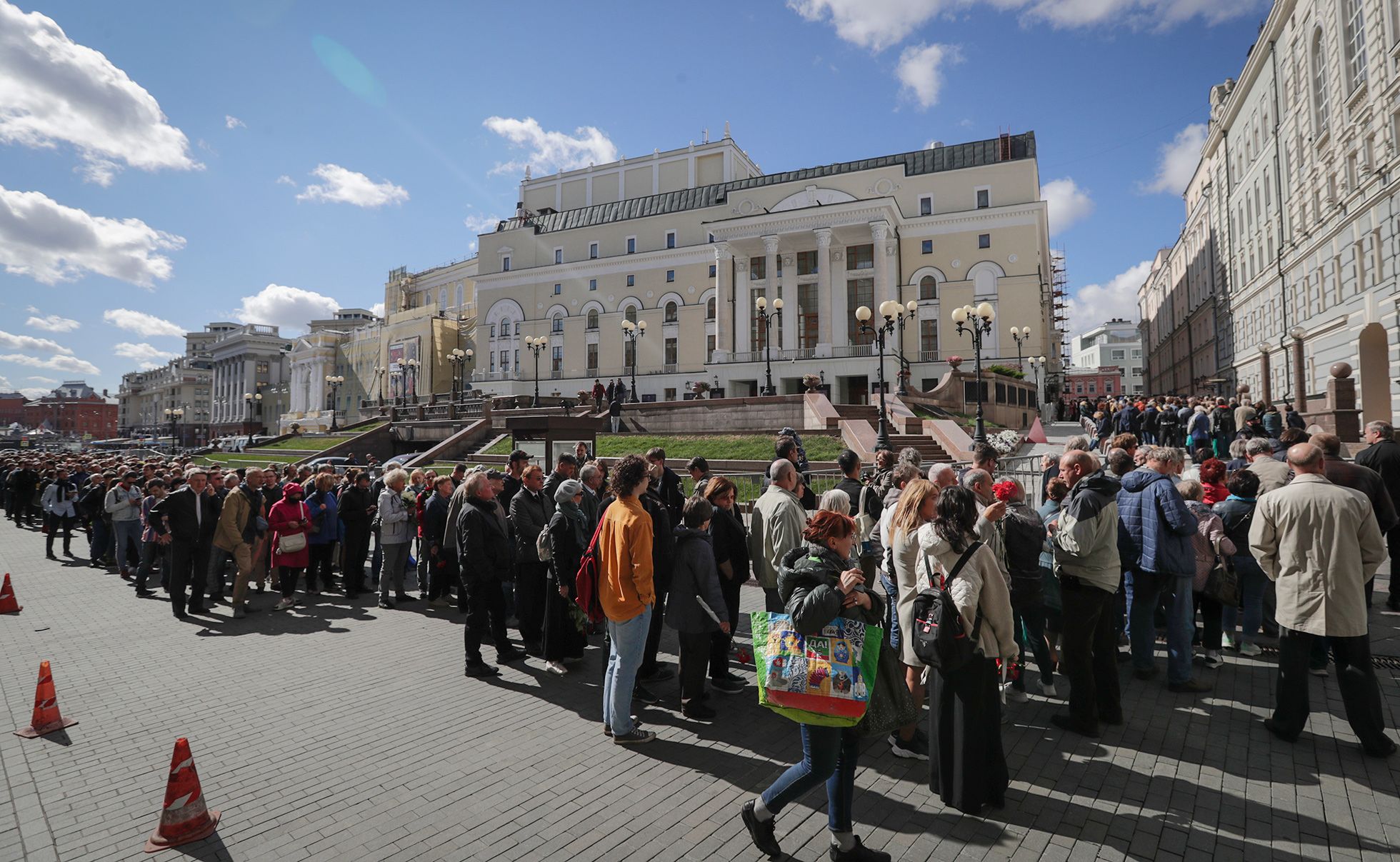 Выход из метро в сторону Дома союзов — здания на углу Большой Дмитровки и Охотного Ряда в Москве — закрыт. В полдесятого утра хвост очереди из людей, желающих проститься с первым и последним президентом Советского Союза Михаилом Горбачевым, застрял между Старой и Новой сценами Большого театра. Люди стоят в специальном коридоре из металлических заграждений: выйти отсюда можно только назад, на площадь Большого театра. У многих в руках цветы.
