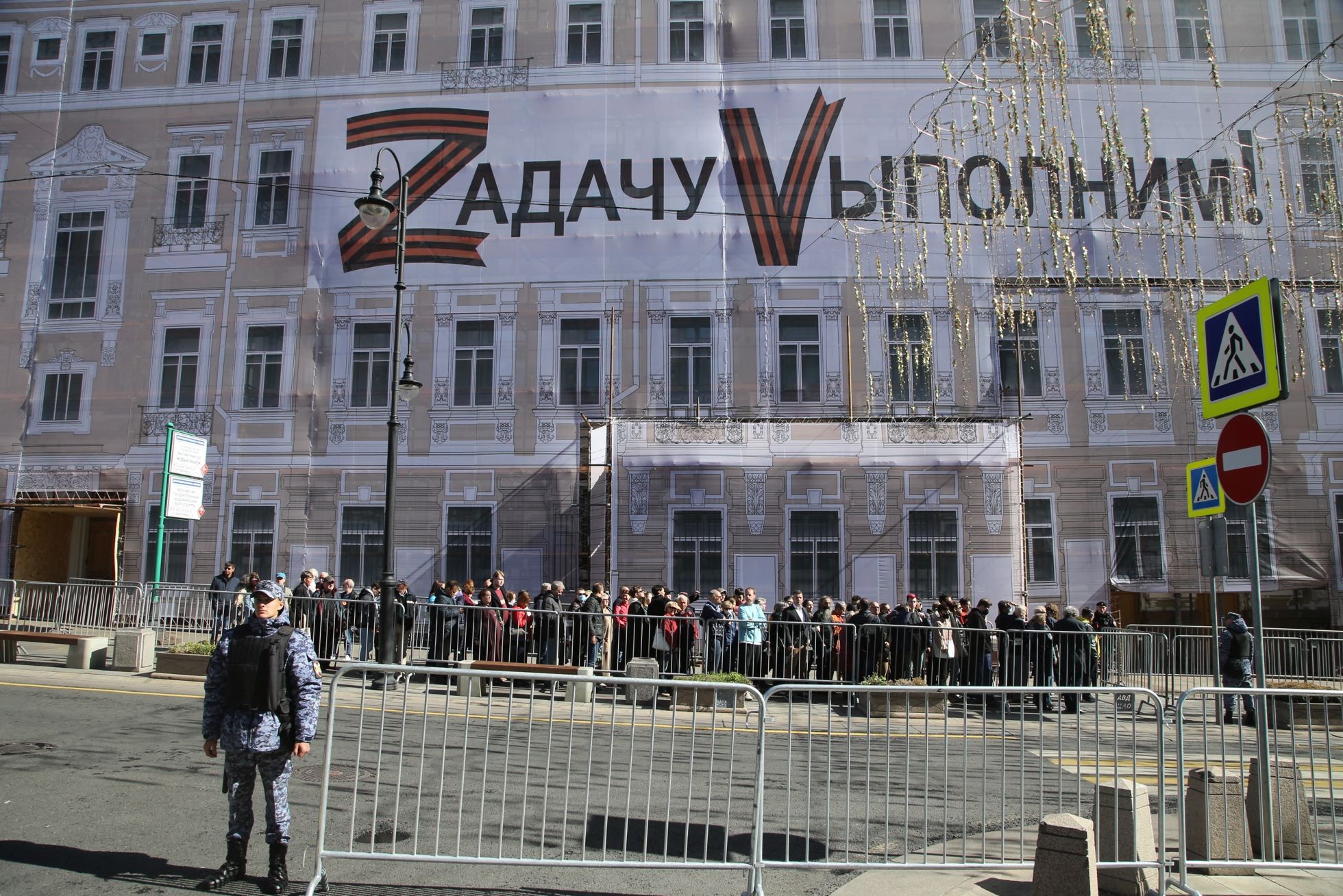 — Чтобы толпы не было, запускаем частями, — объясняет девушка из полиции. — Тут только две улицы открыты. Сейчас они проходят. Потом вы.
