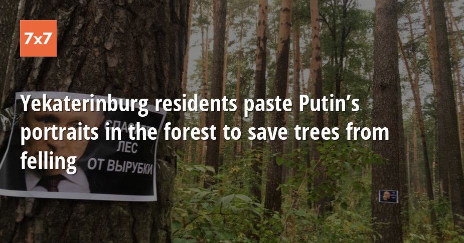 Residents of Yekaterinburg pasted portraits of Vladimir Putin on trees and asked the president to protect the old-growth forest. The trees are planned to be cut down for the construction of an elite residential complex. According to the townspeople, this may cause problems with the environment, because there are many animals living in the forest.