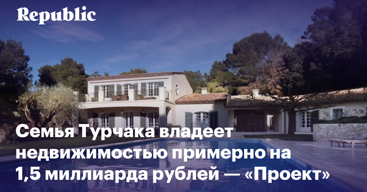 Семья секретаря генсовета «Единой России» Андрея Турчака владеет недвижимостью примерно на 1,5 миллиарда рублей, в том числе дачей на месте советских оборонных заводов и виллой в Каннах. Об этом говорится в расследовании издания «Проект».
