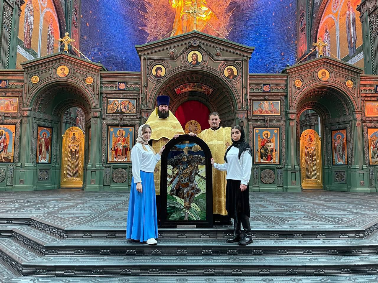 «Мариуполь — наше Куликово поле». В храме Минобороны РФ освятили витраж с воином Пересветом. Его создали из осколков стекла, собранных на местах боев в Мариуполе