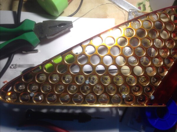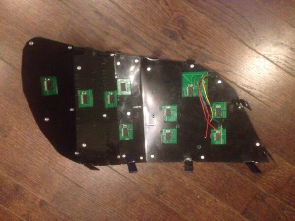 В плане визуальной составляющей я решил сделать все на твердых платах с изломами в качестве следующего эксперимента, как оно должно быть. Скажу сразу - вышло совершенно не очень. В темное время суток, конечно же, все было просто в огнях, но на самом деле выглядело уберкугутски. Спасали только накладки черного пластика, которые позволяли пройти "тест 2 метров", но все же до заводского качества было как до Киева в интересной позе полуночных любовников.