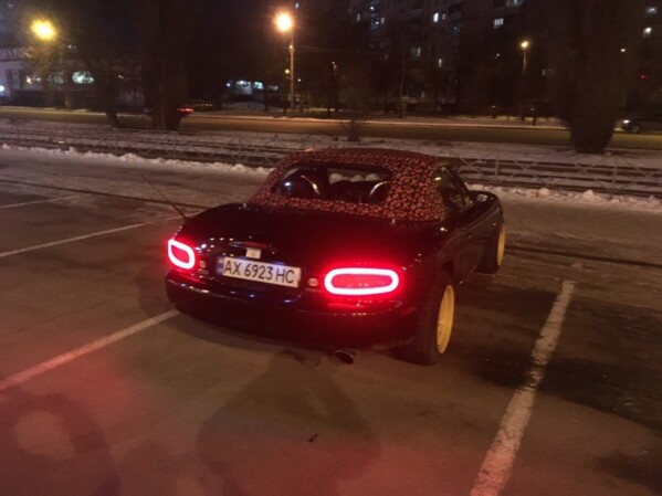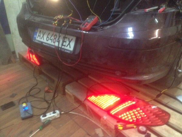 Конечно не обошлось без курьезов. Снимать фонари на машине мы ездили на пару часов - а задержались на 2 дня. Если вы посмотрите внимательно на диски тачки - заметите, что нормальный и красивый диск на ней только один. Задний левый ) Ну и стоп-сигнал на тачке не работал в принципе, поэтому показать тормоза и задний ход на видео не получилось.