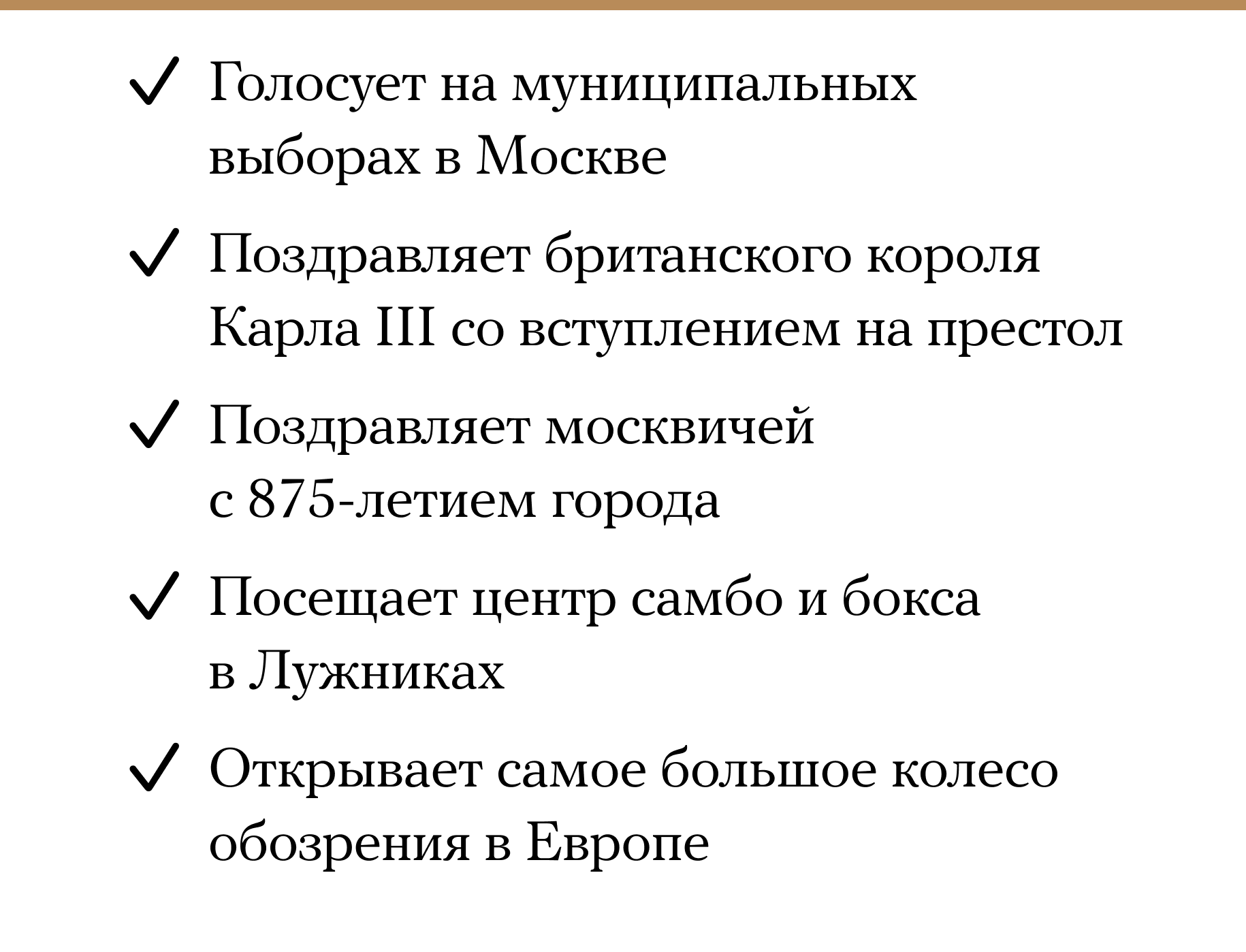 10 сентября Служба безопасности Украины заявила, что ВСУ вошли в Купянск — третий по величине город Харьковской области, который был оккупирован в первые дни войны. Источники с российской стороны также заявили, что российские войска под угрозой окружения оставили Изюм, расположенный к югу от Купянска. Кроме того, появилась информация о наступлении ВСУ на Лиман — город в Донецкой области недалеко от границы с Харьковской областью. На фоне отступления российских войск Минобороны РФ отключило комментарии во всех соцсетях. При этом официально российское военное ведомство пока не отреагировало на сообщения об отходе с ранее оккупированных территорий — как и президент России Владимир Путин. 10 сентября он принял участие в мероприятиях по случаю 875-летия Москвы, в том числе посетил международный центр самбо и бокса в спорткомплексе «Лужники» и (по видеосвязи) принял участие в церемонии запуска колеса обозрения «Солнце Москвы», которое является самым большим в Европе. Также Путин проголосовал онлайн на муниципальных выборах в Москве и поздравил британского короля Карла III со вступлением на престол.