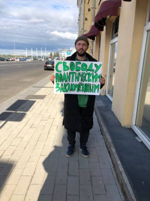 Александр Дикунов во время пикета. Фото предоставил сам пикетчик