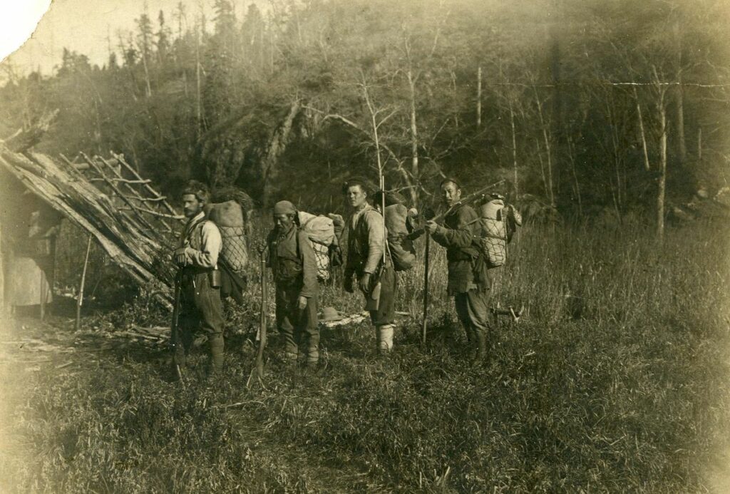 Владимир Арсеньев (первый слева) и Дерсу Узала (второй слева) с участниками экспедиции на Сихотэ-Алинь, 1906.