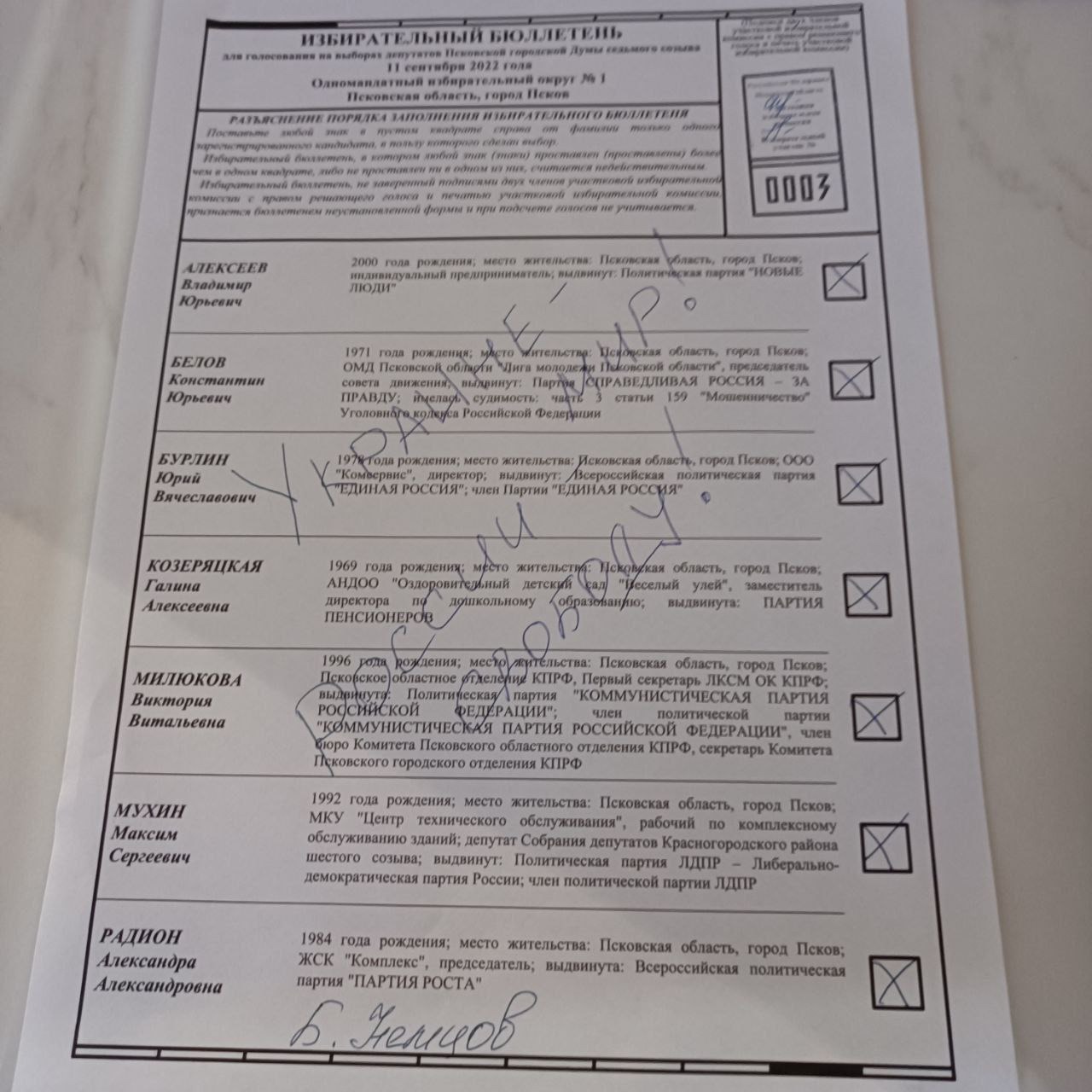 Жители Псковской области писали «Нет войне» на бюллетенях для голосования
