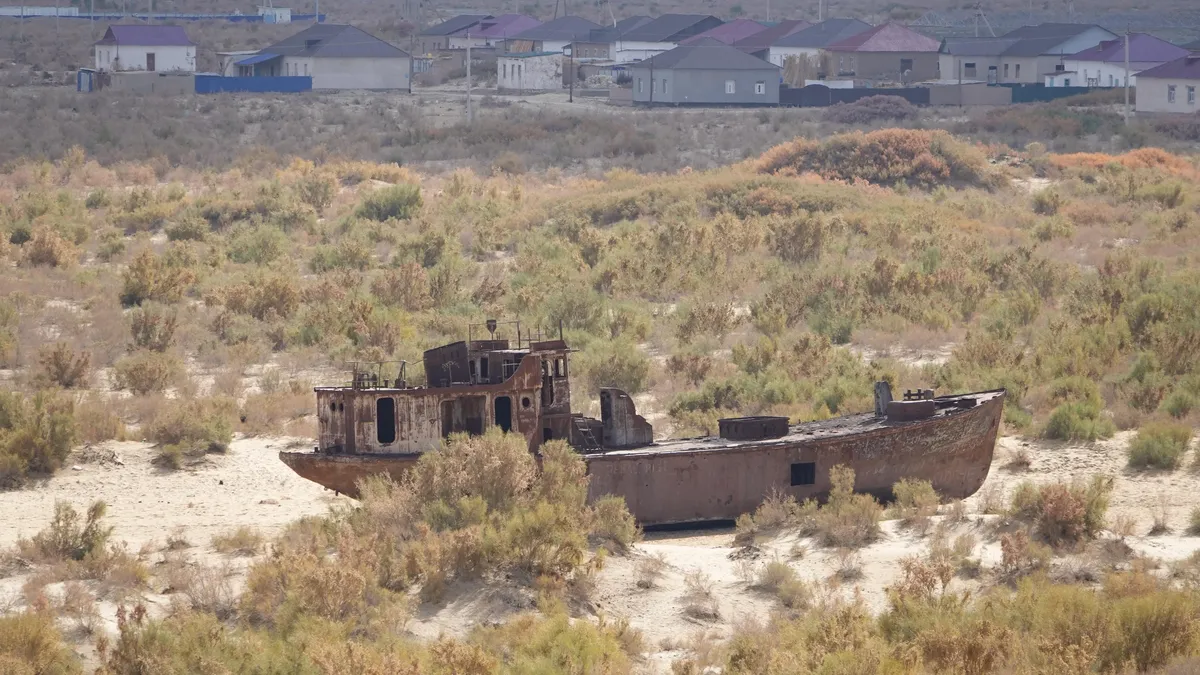 После того как в 1960-е годы советская власть отвела воды рек Сырдарьи и Амударьи, питающих Аральское море, для орошения хлопковых полей, Арал начал высыхать. В 1985–1986 годах уровень моря снизился с 53 до 41 метра — Арал распался на два водоема: Малый Арал (территория Казахстана) и Большой Арал (территория Узбекистана). К 2002 году уровень моря упал еще на 10 метров. Корабли оказались в песке, а местные жители — в эпицентре масштабной экологической катастрофы. Всего с 1960 по 2009 год площадь Арала сократилась в 10 раз (с 67 499 км² до 6 700 км²).
