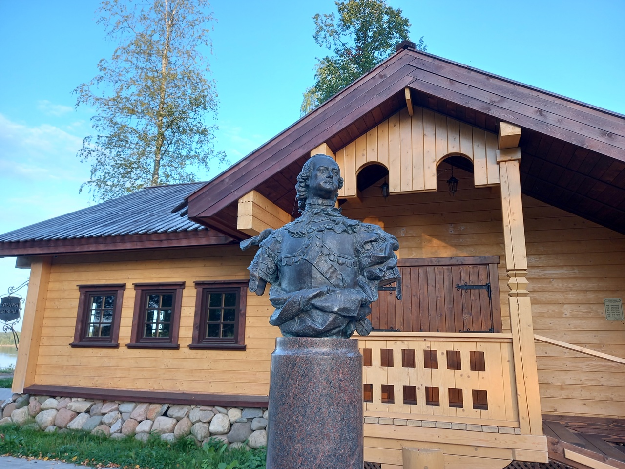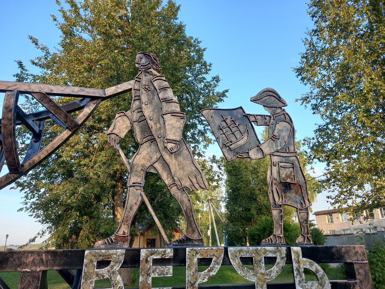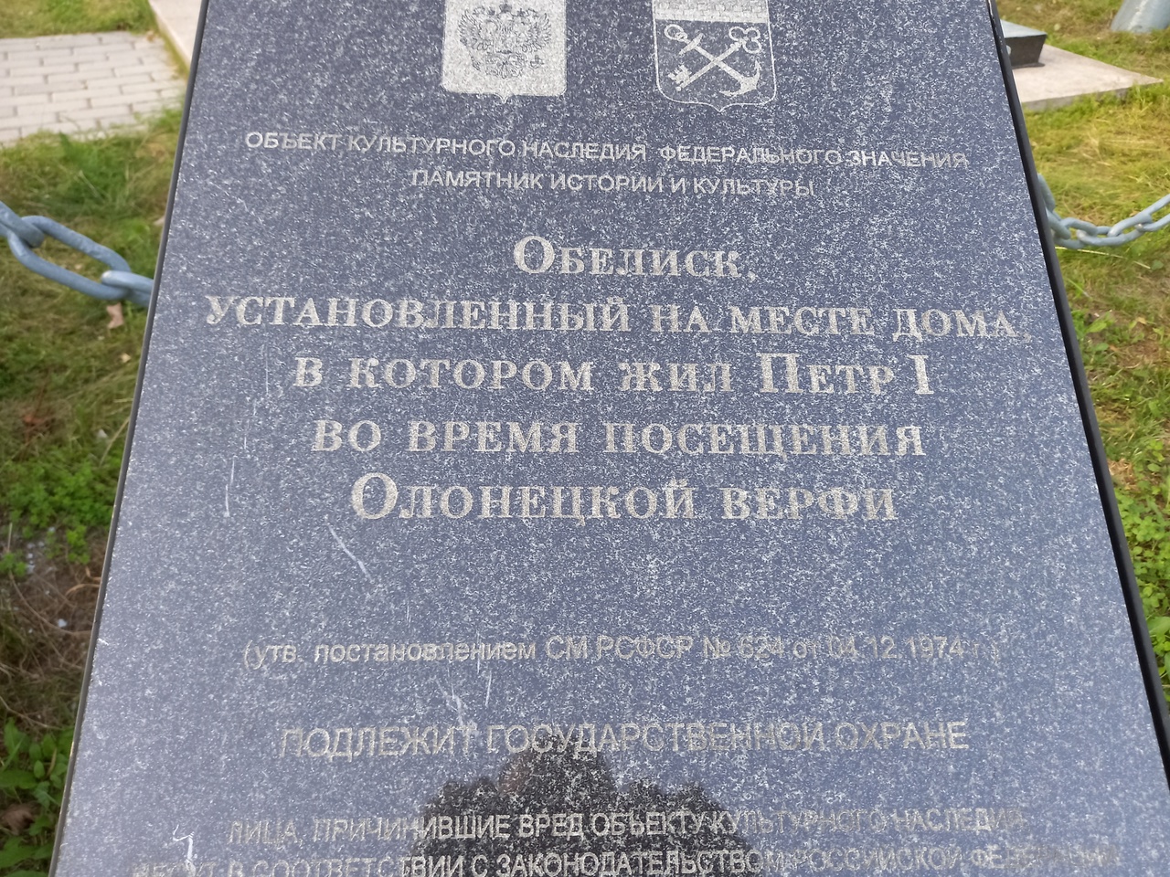 На месте, где жил Пётр I во время посещения верфи, установлен обелиск.