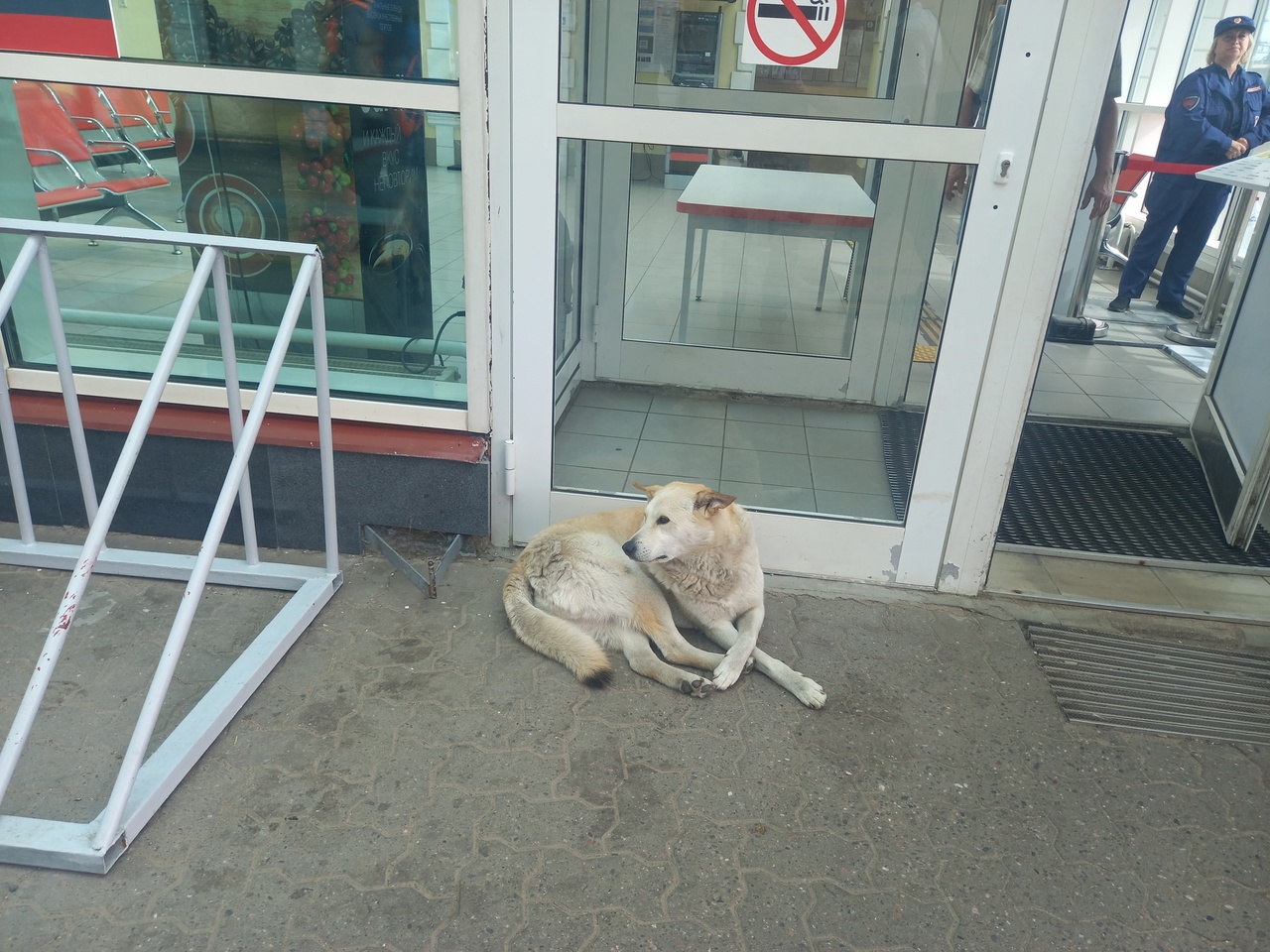 Отличительная черта вокзала в Волхове - это собаки, которым здесь дали приют. За это они, видимо, охраняют вокзал от всяких злоумышленников. Вид у хвостатой работницы вполне довольный.