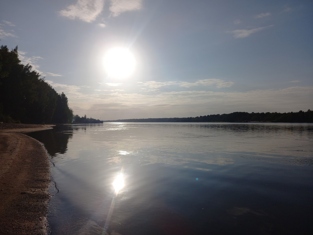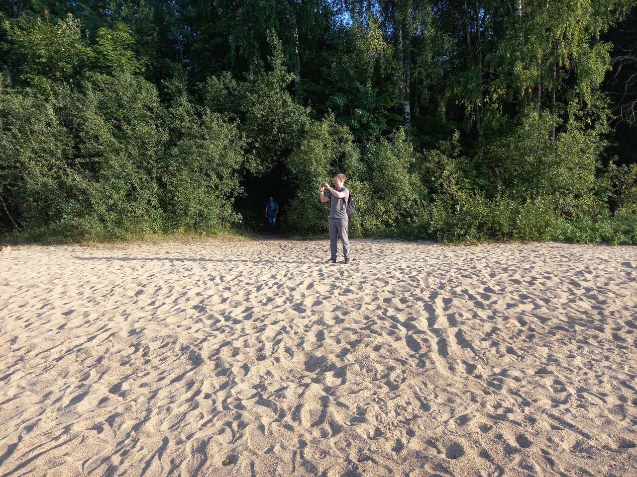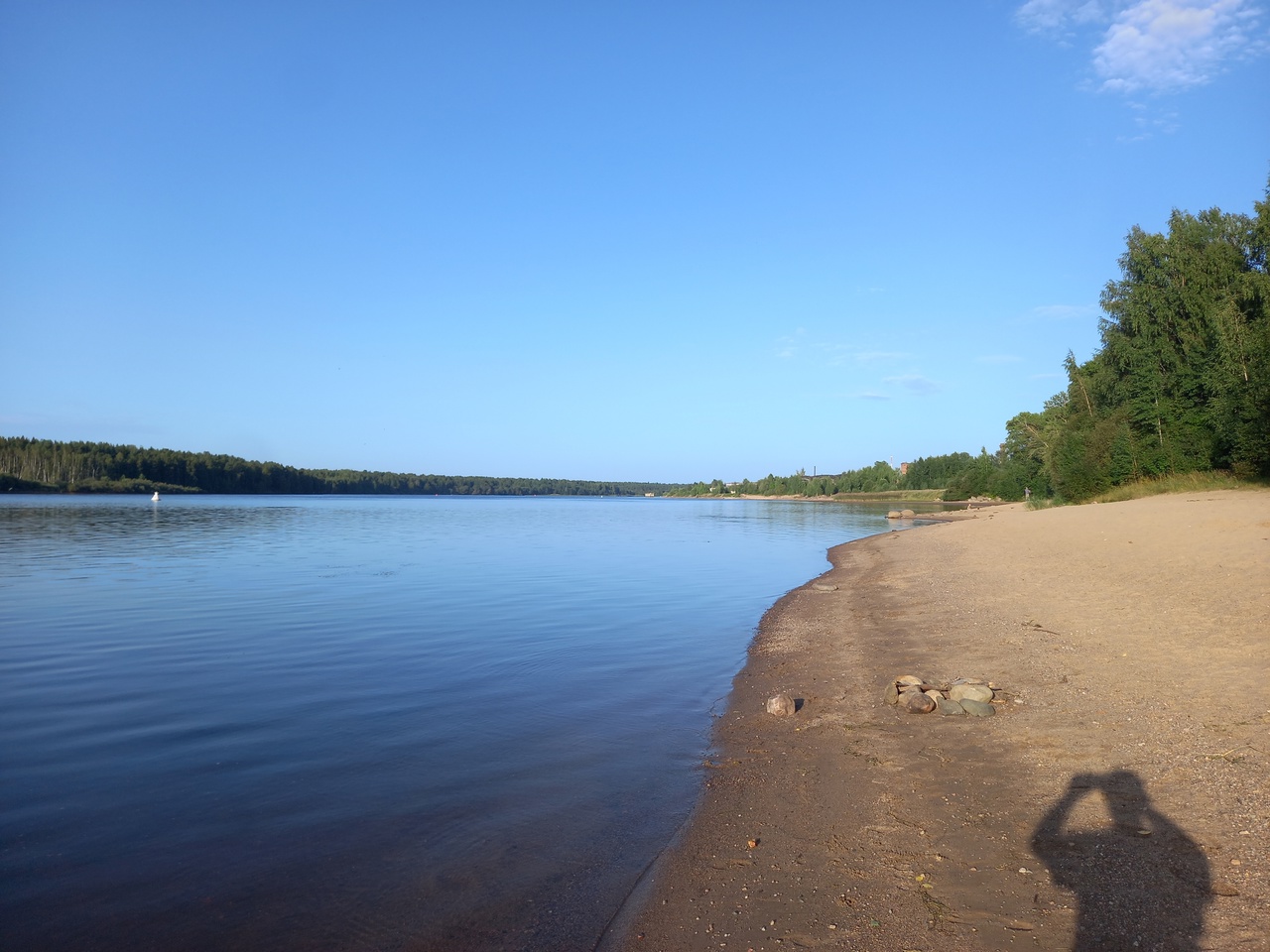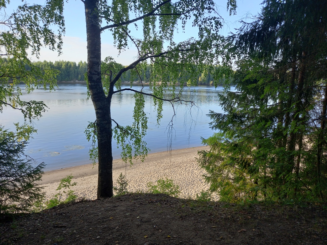 Пляж на реке Свирь. Если на озере купалось много местных жителей, здесь никто не купался. Только несколько человек загорали, наслаждаясь тишиной. Хотя вода здесь чистая на вид и песок приятный.