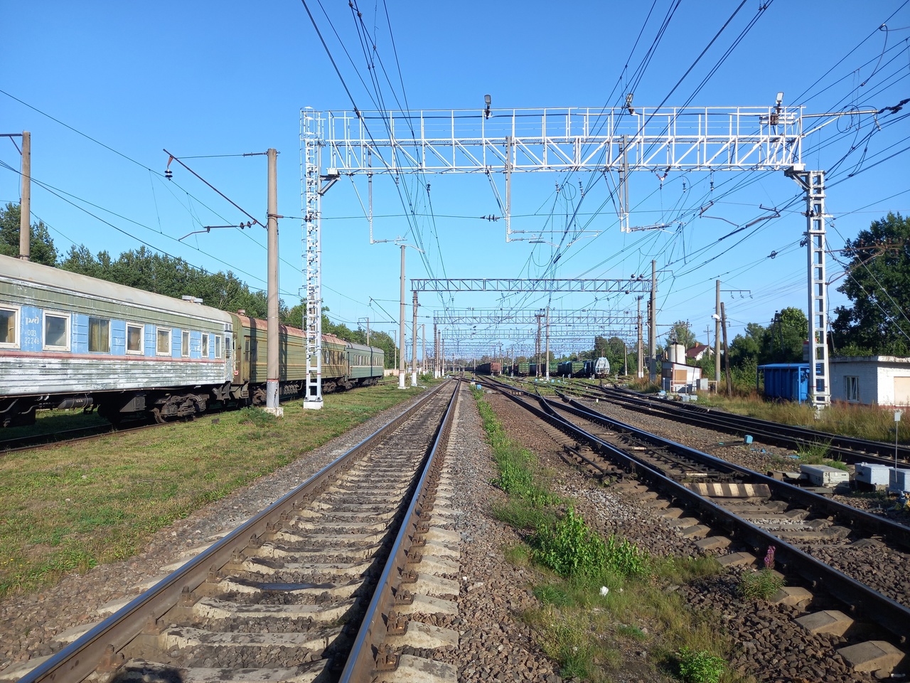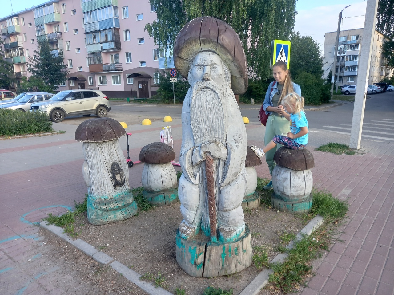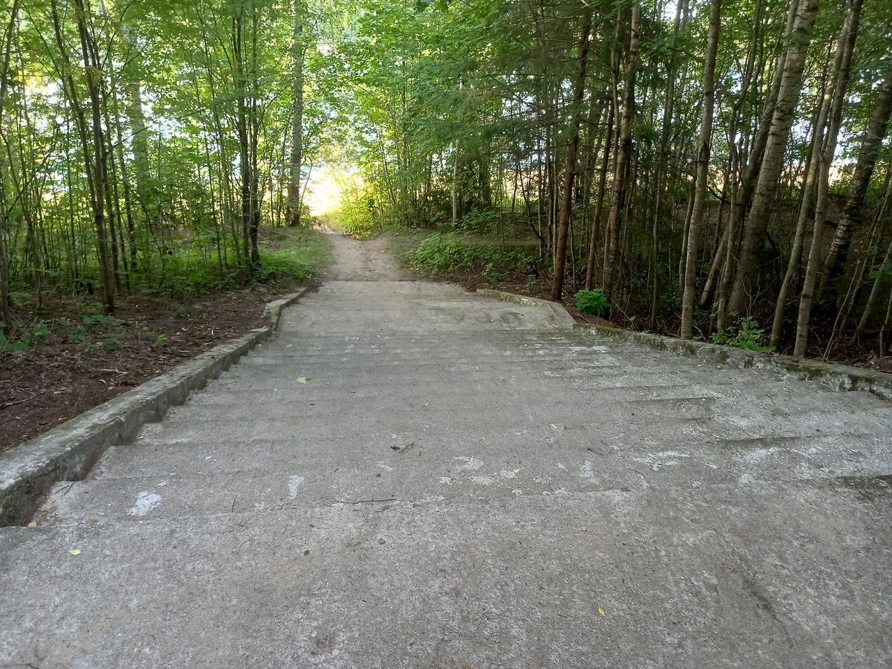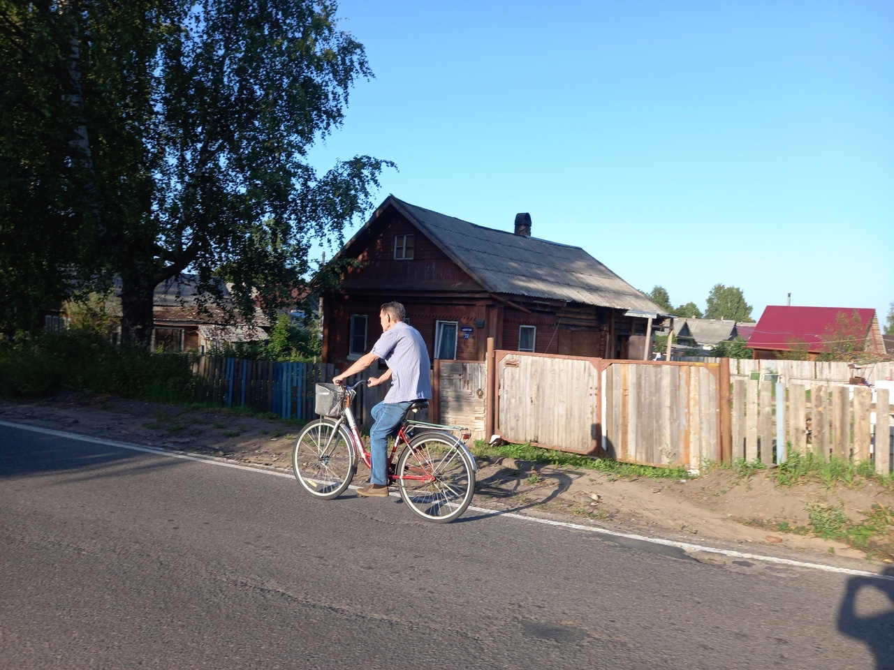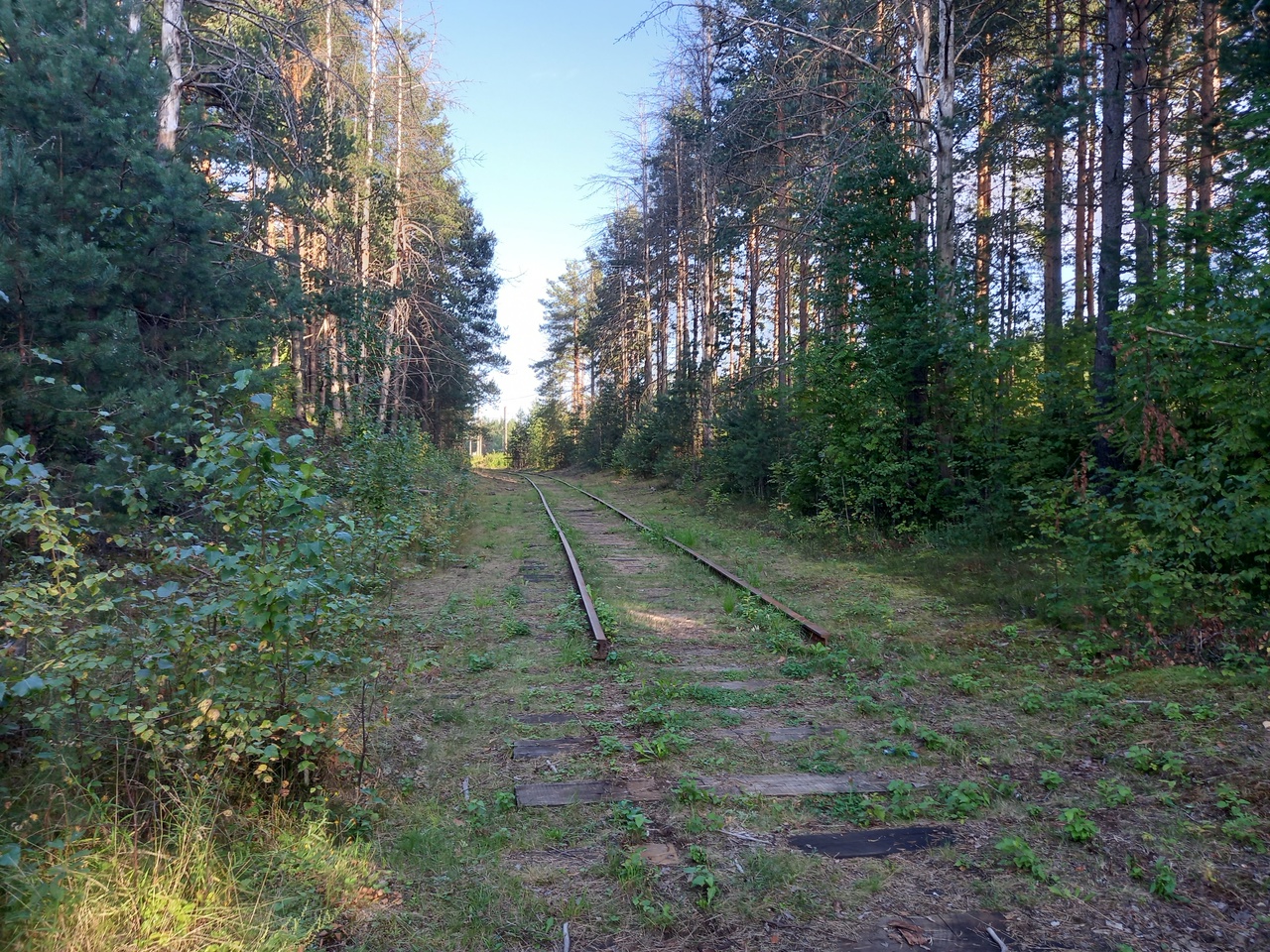 На станции к нам присоединился местный житель Андрей Манухин, которого хорошо знают в городе - он эксперт по сбору ягод. Вместе с ним мы пошли гулять по городу. Он нас вел самыми короткими тропами, которые позволяли сокращать расстояние. Одна из троп прошла мимо частично заброшенной железнодорожной ветки, которая шла на деревообрабатывающее предприятие.