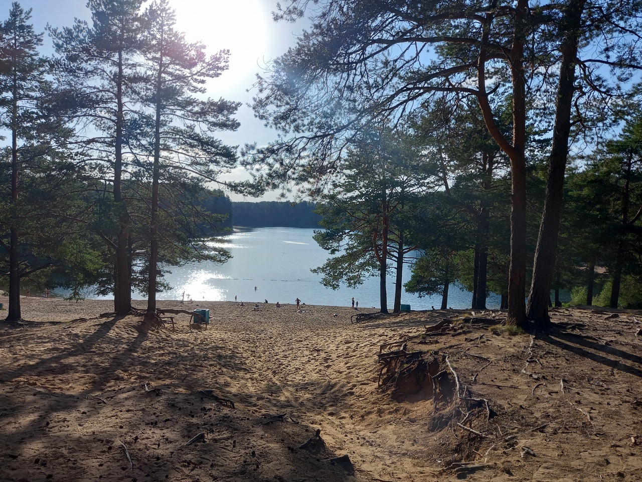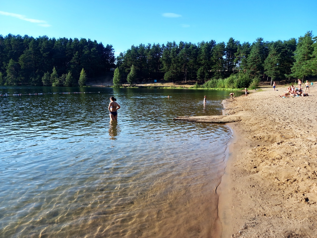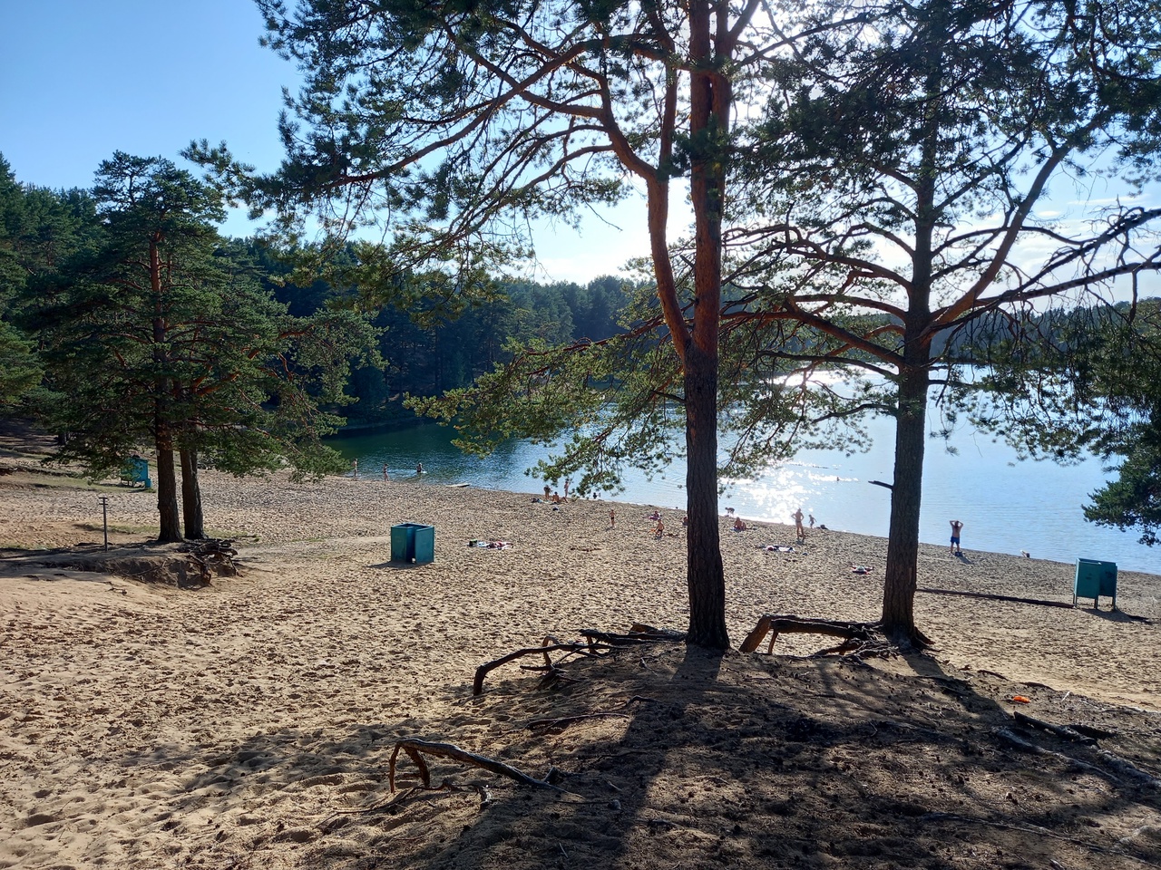 На озере много пляжей. Если не нравится тот песочный, куда пришли мы, всегда можно уйти на другие пляжи, где меньше людей.