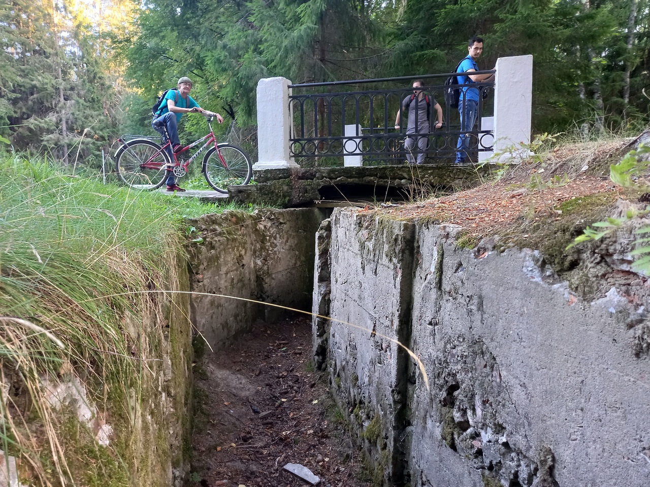 Мои спутники стоят на мостике через траншею, а я отправился гулять по ней дальше.