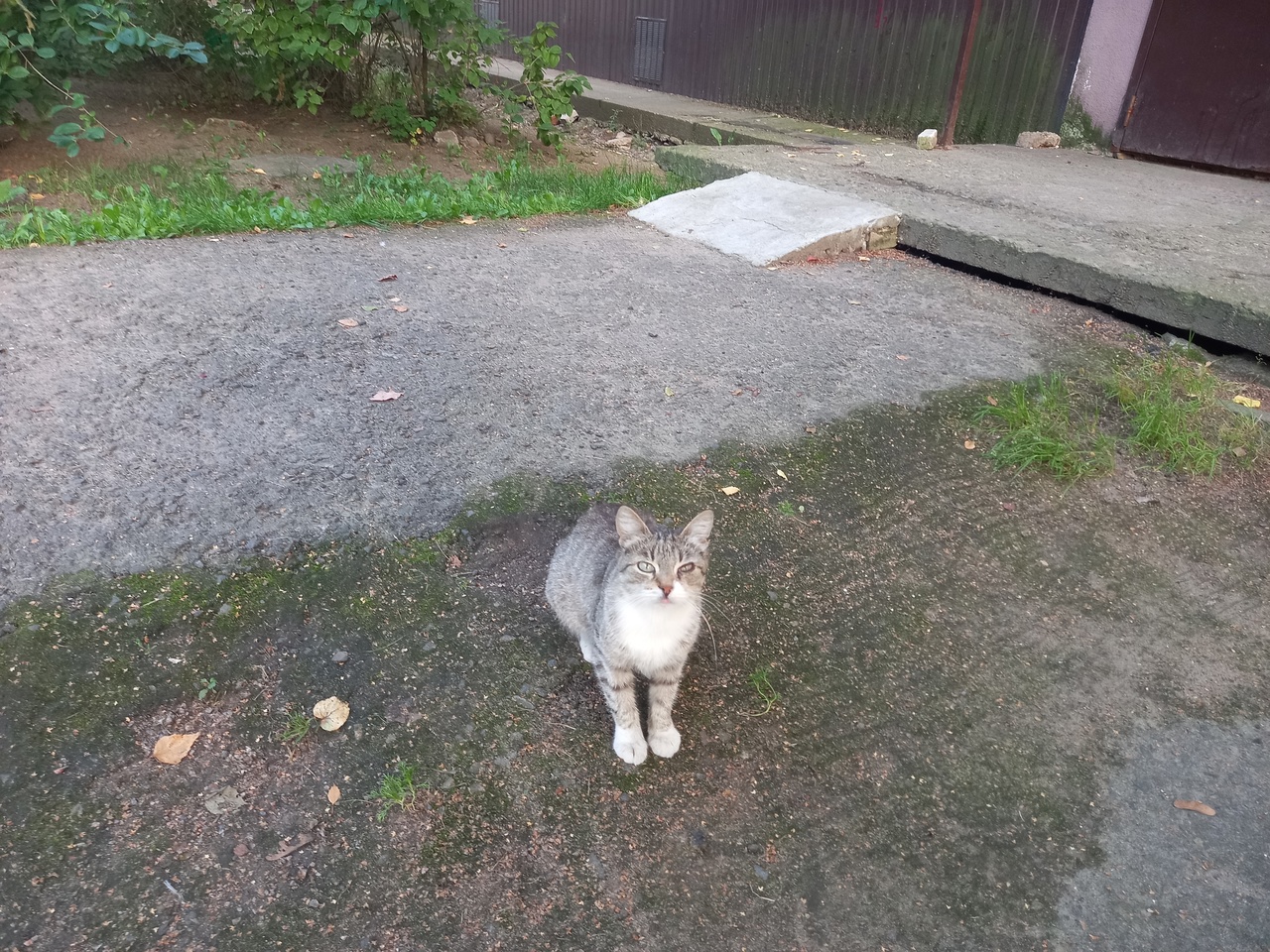 Местный кот. Пока мы с ним общались, из окна высунулась бабка, которая считала, что мы хотим его похитить, стала нам кричать проклятия и посылать нас на три буквы. Что-то в Ленинградской области многовато сумасшедших теток, которые любят кричать на людей из окна. Думаю, это результат долгого смотрения российского телевидения. Люди смотрят всяких уродов вроде Соловьёва, Киселёва и Скабеевой - и сходят с ума.