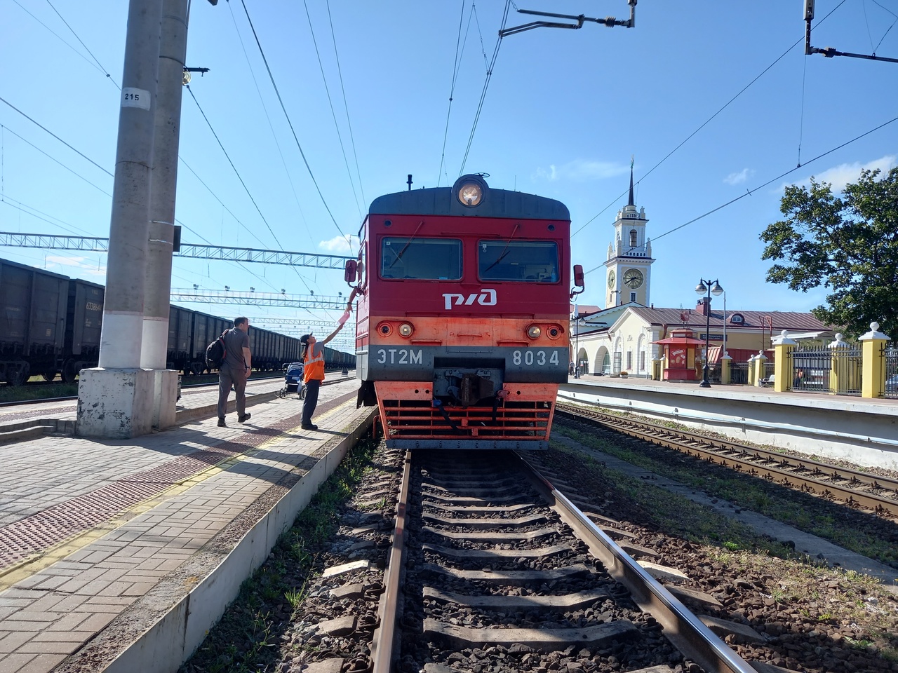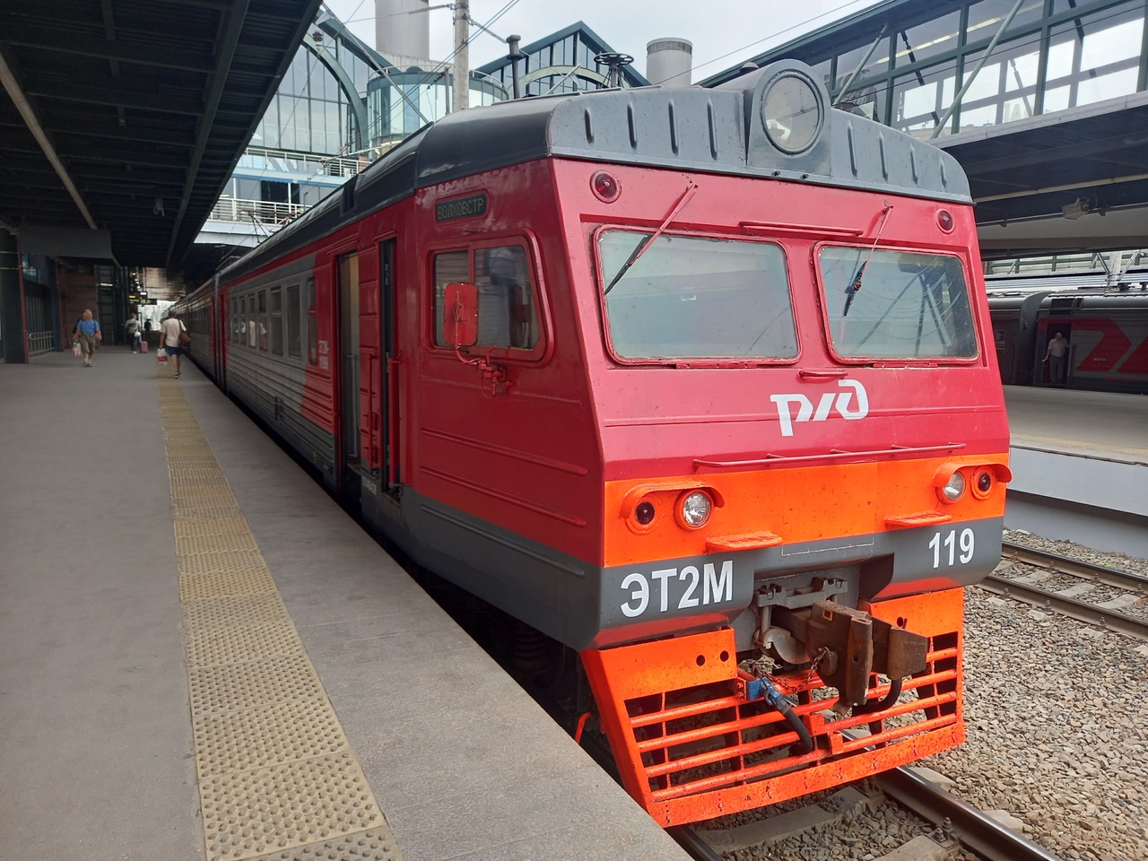 На фото — электричка, на которой мы поехали с Ладожского вокзала до станции Волховстрой-1. Отправление — в 10:29.