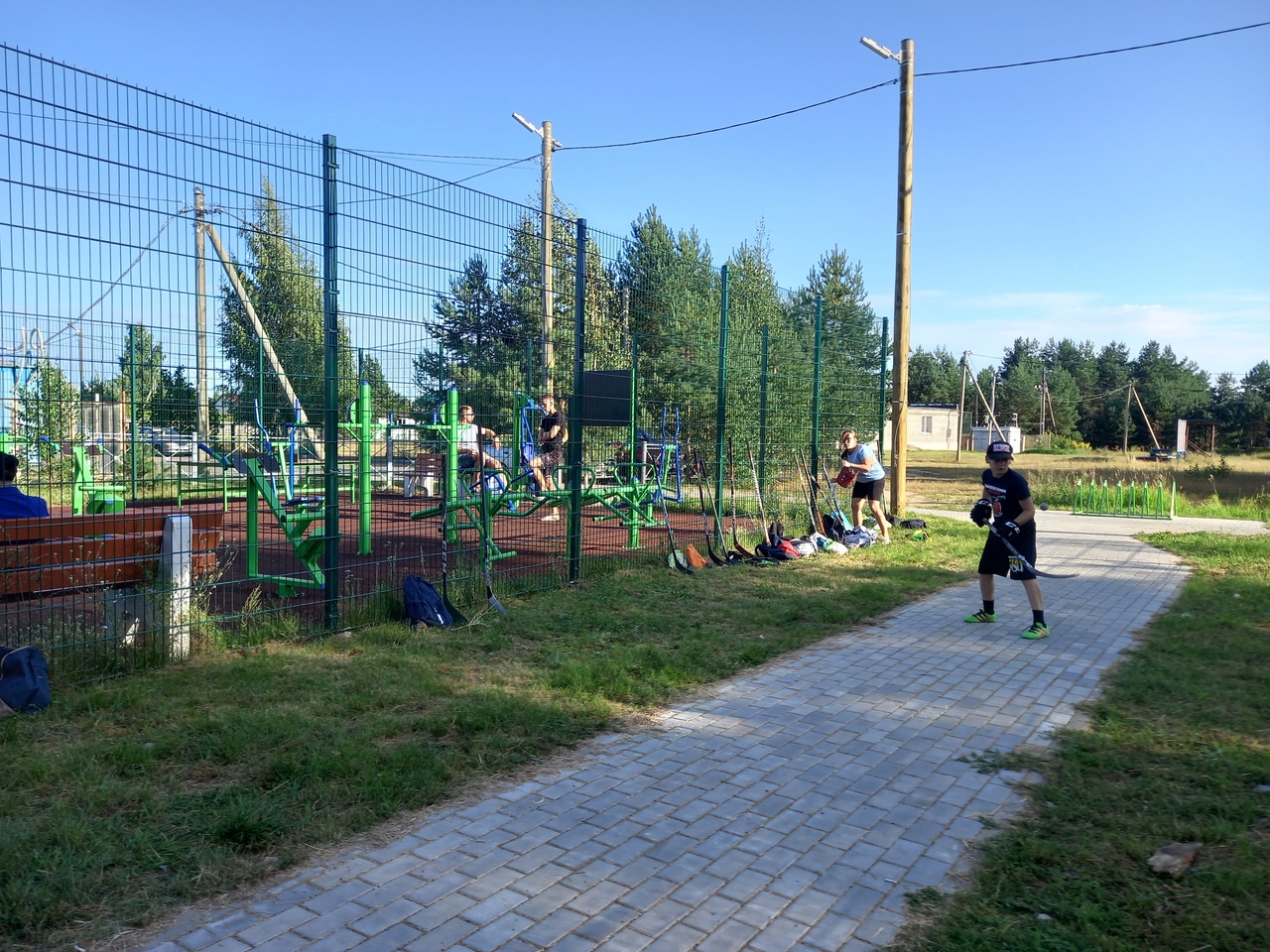 Отправились сначала на озеро Озерко. Оно было одной из целью поездки. Я там уже бывал шесть лет назад, хотелось вернуться в эти красивые места. Возле озера увидели спортплощадку. Рядом команда ребят с тренером отрабатывала технику хоккея на траве. Редкий в нынешние времена спорт. Но здесь он, судя по всему, развит.