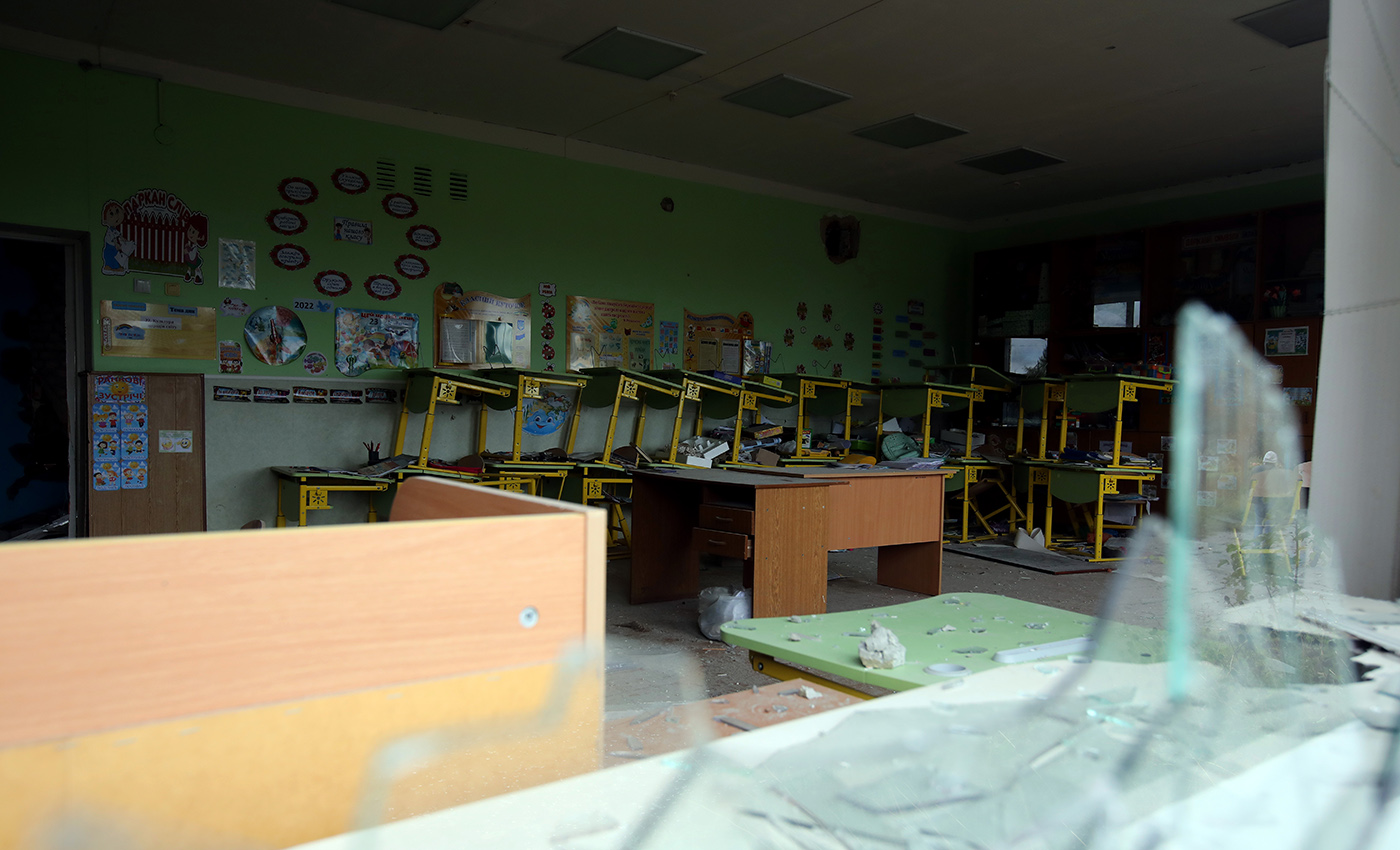 Разрушенная школа в освобожденной украинской армией деревне Вербовка (Балаклейский район) Украины, 13 сентября 2022 года. Фото: Vyacheslav Madiyevskyy / NURPHOTO / Reuters