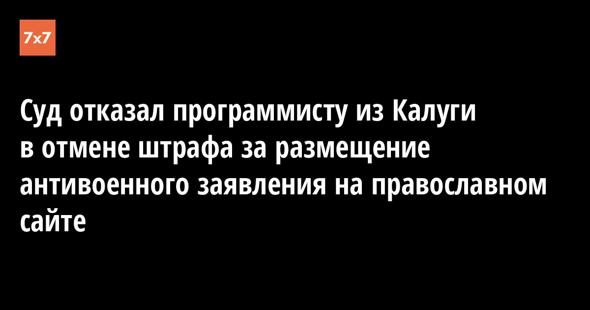 Программист Александр Иванов разместил на православном сайте антивоенное заявление, за что суд оштрафовал его на 45 тыс. руб. Он не согласился с этим решением и решил его обжаловать. Суд отказал Иванову в отмене штрафа. Об этом программист рассказал «7х7».