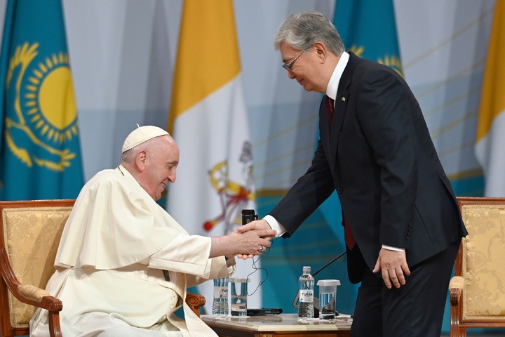 12:30 Президент Казахстана Касым-Жомарт Токаев встретился с Папой римским Франциском, который прилетел в страну.