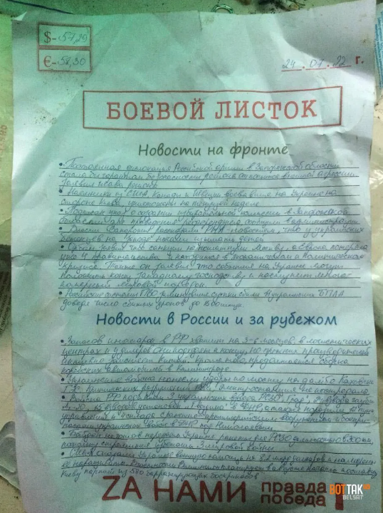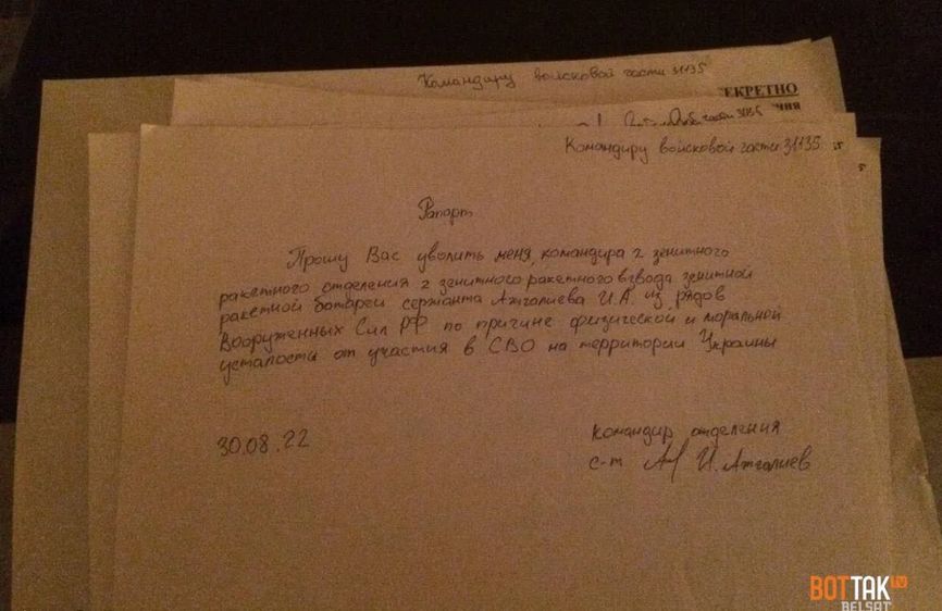 В нескольких рапортах военные из части 31135 просили об увольнении «по причине физической и моральной усталости от участия в СВО на территории Украины». Кроме этих документов в распоряжение журналистов попал «Боевой листок» — информационный бюллетень для солдат. Согласно такому листку, российская армия выигрывает войну, а санкции против России неэффективны.