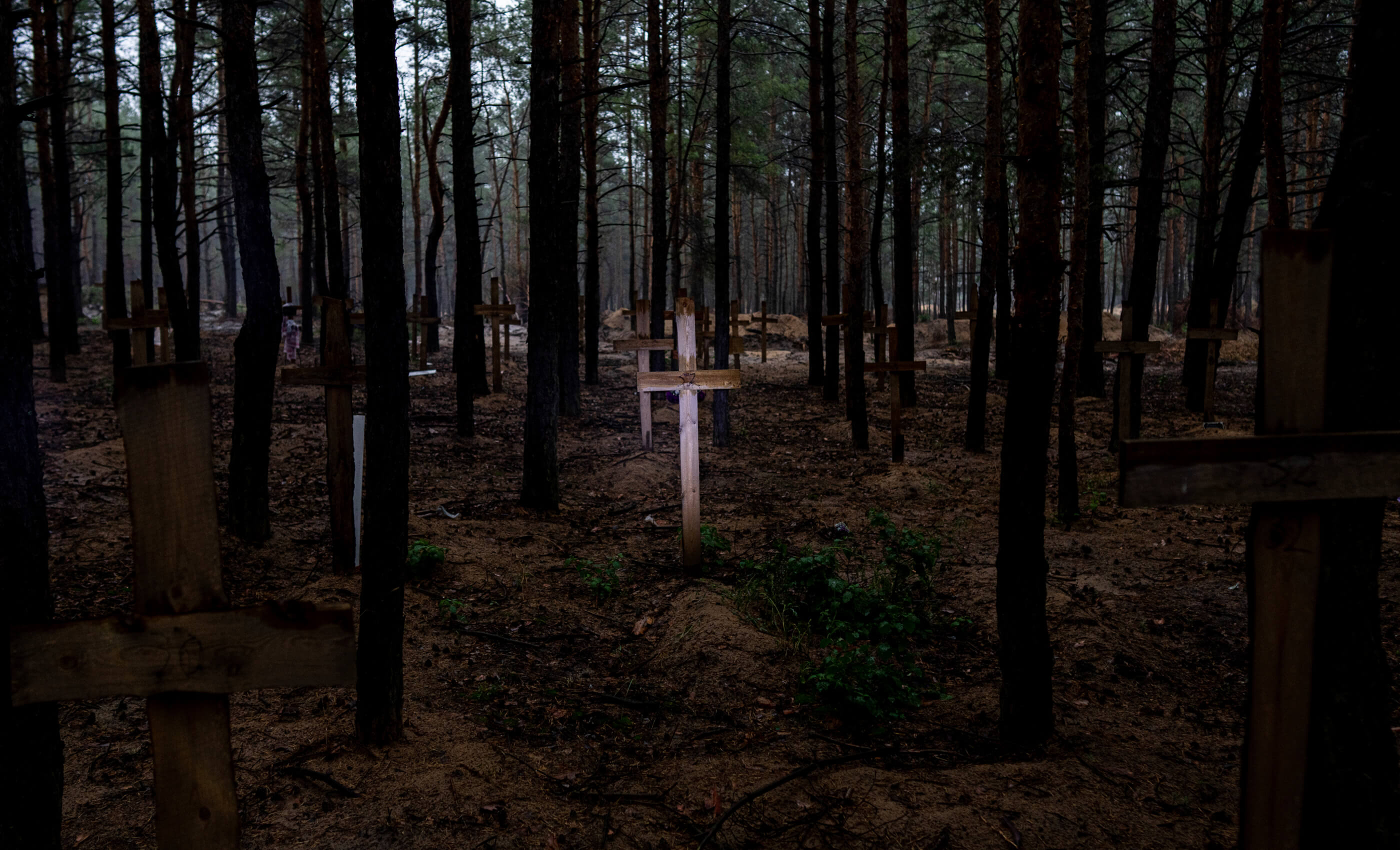 В Изюме Харьковской области, который был под контролем российской армии с начала апреля по сентябрь, обнаружили кладбище в лесу. Многие из похороненных там, как предполагают украинские власти, погибли под обстрелами, когда за город шли ожесточенные бои, но, вероятно, там есть и расстрелянные российскими военными уже после захвата города. «Медиазона» публикует фотографии последствий оккупации Изюма.