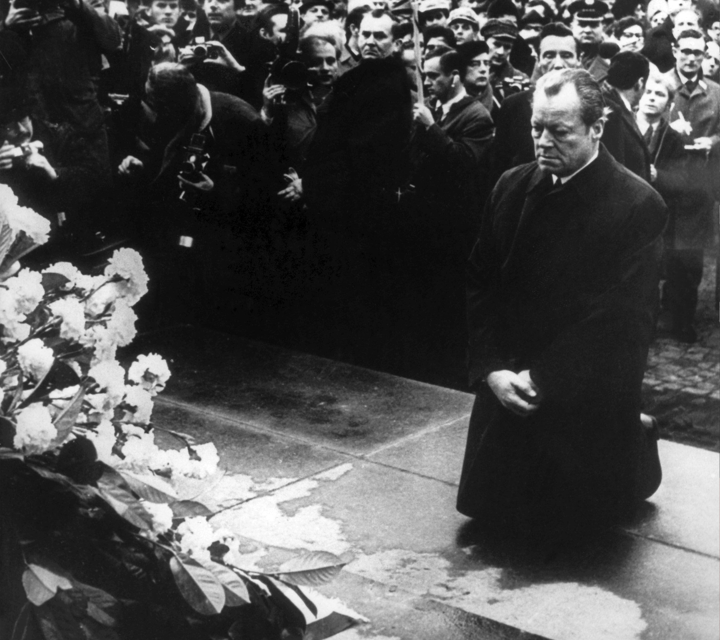 7 декабря 1970 года на тот момент только что назначенный канцлер Брандт поехал с визитом в коммунистическую Польшу. Там он среди прочего посетил памятник жертвам восстания в Варшавском гетто. Вилли Брандт возложил венок, а потом неожиданно для всех упал у мемориала на колени. Позже Брандт расскажет, что это был спонтанный жест и что он просто сделал «то, что делают люди, когда им не хватает слов».
