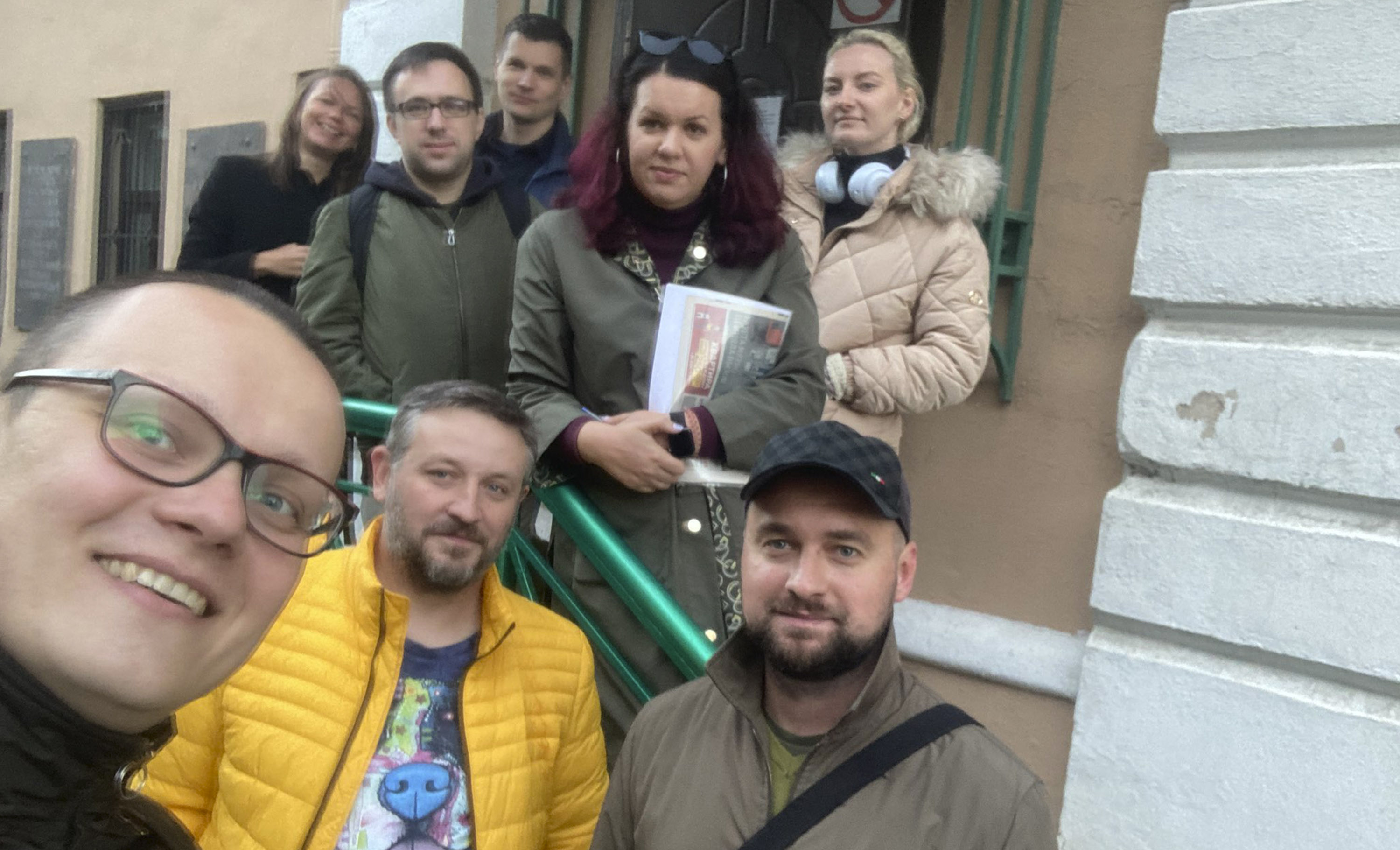Собрание депутатов МО «Смольнинское» на крыльце муниципалитета. Фото: @NikitaYuferev / Twitter