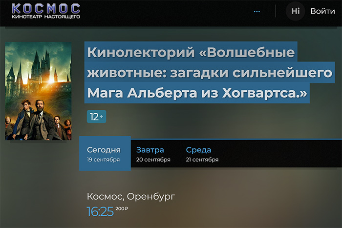 Интересный пример, как разные кинотеатры пытаются использовать слова-обманки, чтобы уйти от ответственности, поскольку западные лицензии на фильмы отозваны и официально показывать голливудское кино нельзя. В Оренбурге кинотеатр «Космос» называет показ западного фильма «кинолекторием» и еще переиначивает названия фильмов. Например, фильм «Фантастические твари: Тайны Дамблдора» называют «Волшебные животные: загадки сильнейшего мага Альберта из Хогвартса», а «Мир юрского периода» — «Мир Юры в парке».