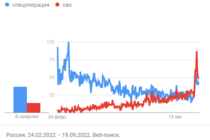 Также мы видим сейчас, что в языке прижилась аббревиатура «СВО», использование которой резко возросло. А слово «спецоперация», наоборот, отмирает. И эти данные мы видим по социальным сетям.