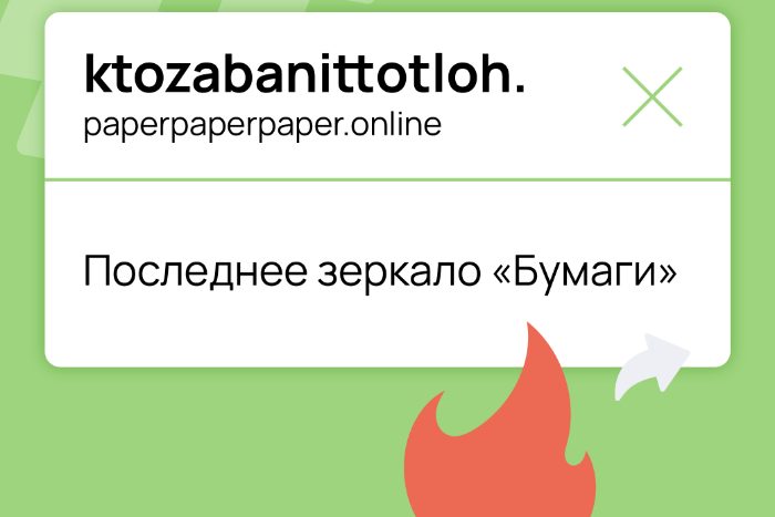 В понедельник, 19 сентября, Роскомнадзор заблокировал последнее зеркало «Бумаги», которое выбрали наши читатели: ktozabanittotloh.paperpaperpaper.online. Информация об этом появилась на сайте ведомства.