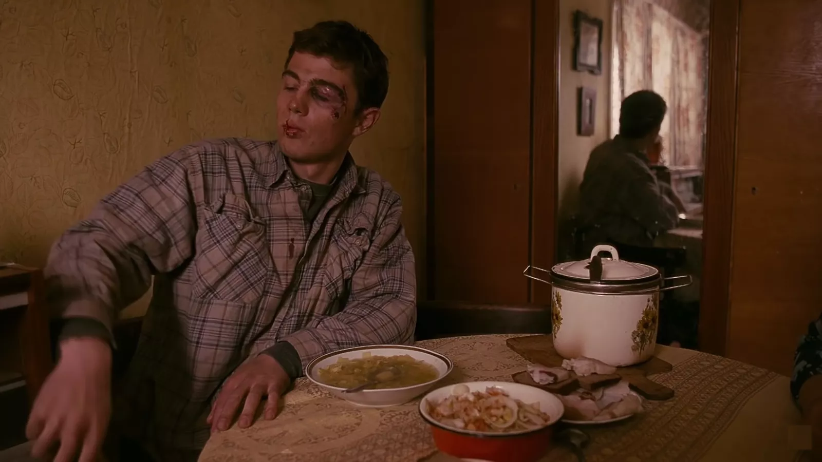 Тогда содранная кожа была хорошо видна, сейчас же остался лишь едва заметный шрам. Но именно попытка разглядеть этот шрам подчеркивает мысль, заложенную в сцене: к такому настоящему Данилу привела нелепая драка, затеянная по глупости в начале фильма. Происходит круговорот насилия.