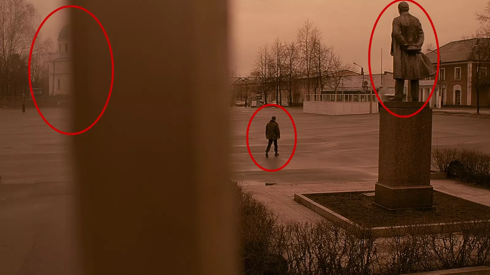 Возможно, стоит также отметить момент, когда Гофман, рассказывая о кладбище, говорит, что привел Данилу на родину немца, так как здесь лежат его предки. Эта тема родины-кладбища может легко ложиться на тему ушедшей в прошлое противоречивой страны, рудименты которой то и дело случайно бросаются в глаза — как памятник Ленину напротив церкви, на площади, по которой идет Данила в начале фильма под рассказ о смерти его отца в тюрьме.