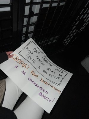 В Петербурге задержали Валентину Парашкину, которая проводила одиночный пикет с плакатом «Где свобода слова, когда сажают даже за посты в соцсетях? Свободу политзаключенным, я за сменяемость власти!» Об этом она сама сообщила ОВД-Инфо.