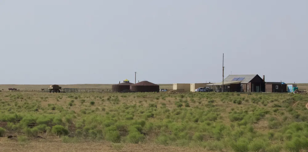 Итак, в начале лета 2022 года мне неожиданно выпала счастливая возможность посетить заповедник «Черные Земли», который находится в республике Калмыкия. Вместе со своими друзьями, Андреем и Наташей Есиповичами, я выехал из Москвы 25 июня, и уже на следующий день мы прибыли на кордон «Озёрный», который расположен среди бескрайних степей недалеко от Меклетинских озер. Как только я увидел огороженную территорию этого кордона, на которой были два жилища, по внешнему виду напоминающие традиционные калмыцкие кибитки, а напротив них — пристройку с кухней и душем (фото 1), мне сразу вспомнились строчки из главы «Бакланы, вороны и сомы» книги «Даррелл в России», которую я прочитал практически накануне: «…Для нашего удобства в степи соорудили настоящую мини-деревню! Здесь была отлично оборудованная кухня, огромная палатка-спальня для команды, две большие кибитки — одна была отведена под столовую, в другой разместилась наша с Ли спальня, она же гостиная, — души, туалеты и все остальные удобства, включая уличное освещение, которое питалось от гигантского генератора…»2